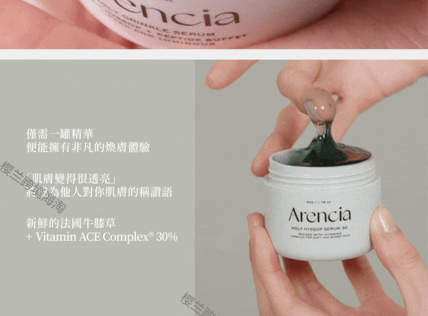 Enhance your beauty routine with Arencia Holy Hyssop Serum 30! This powerful serum features Holy Hyssop, known for its anti-inflammatory and anti-aging properties, to promote radiant and youthful skin. Experience the luxurious and rejuvenating effects of this serum. Elevate your skincare game with Arencia!