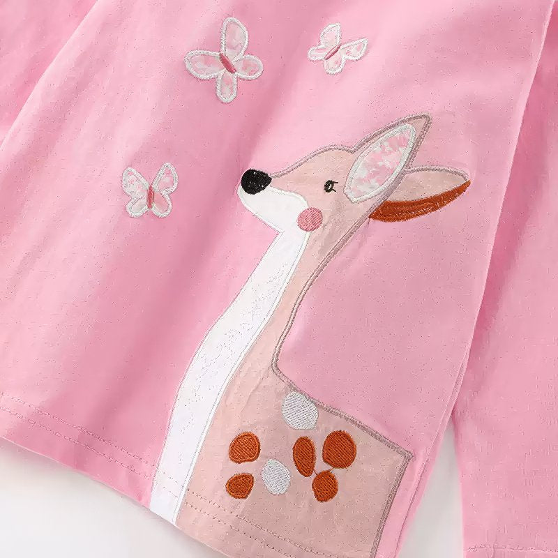 Long-Sleeve T-Shirt with Deer and Butterfly Appliqué for Toddlers brings woodland charm and cozy comfort to your little one’s wardrobe. Featuring a sweet appliqué of a gentle deer and fluttering butterfly, this top combines storybook-inspired design with soft, breathable cotton that's perfect for delicate skin.