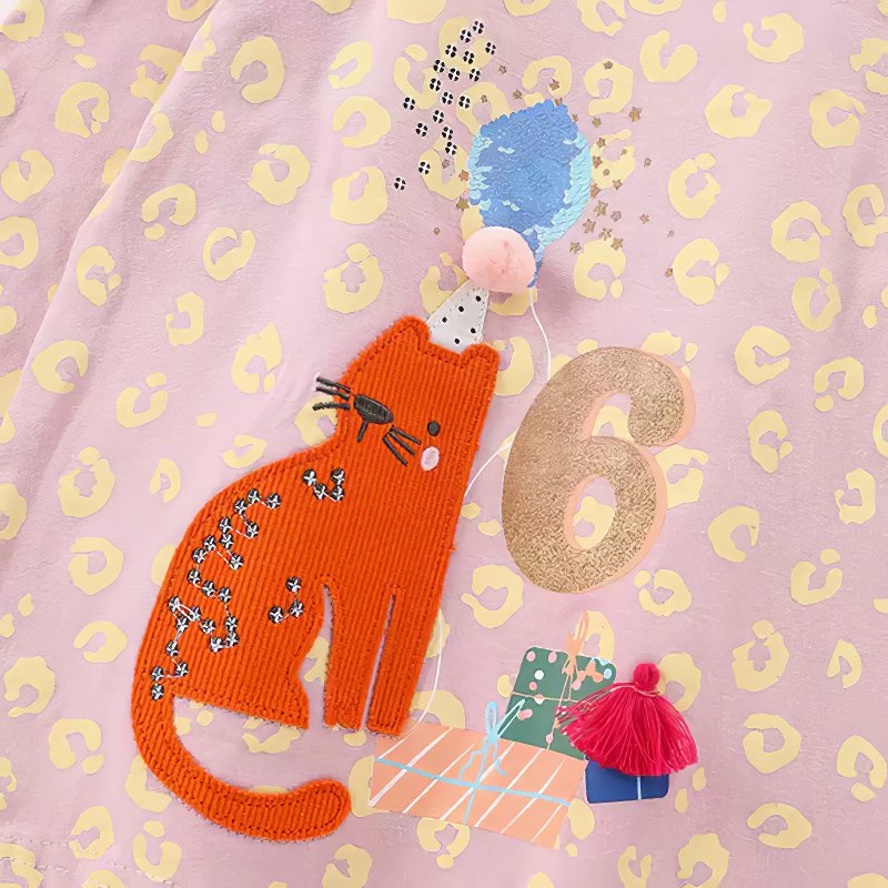 Malwee Toddler Long-Sleeve T-Shirt with Cat, Gifts, and Number 6 Appliqué makes turning six extra special with playful charm and cozy comfort. Featuring a sweet cat surrounded by birthday presents and a bold number "6" appliqué, this tee is perfect for celebrating her big day in style. Crafted from soft, breathable cotton, it’s gentle on delicate skin and ideal for all-day wear.