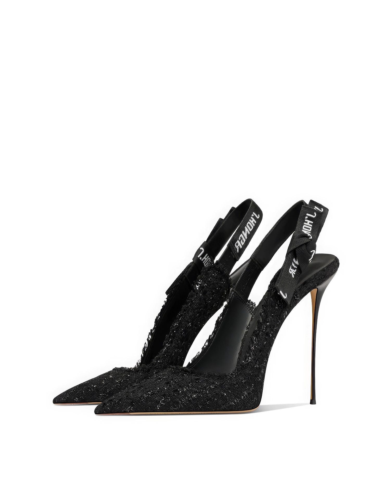 Pointed-Toe Slingback Stiletto Heels with Ribbon Straps