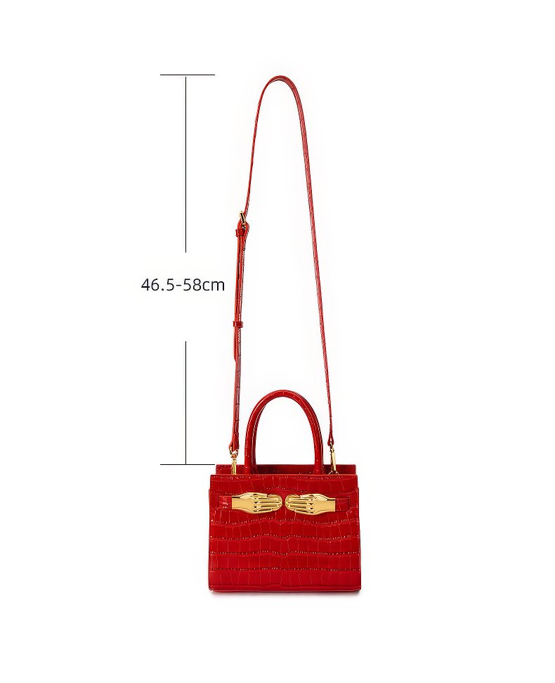 The Red Crocodile Embossed Leather Small Structured Bag is bold, compact, and built to command attention. With its striking crocodile texture and rich crimson hue, this bag delivers high-impact style in a refined, structured shape. Designed for those who appreciate statement accessories, it adds instant edge and sophistication to any outfit.