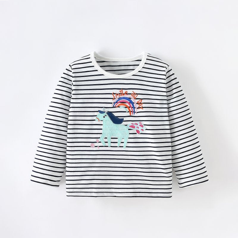 Unleash your inner magic with our Striped Long-Sleeve T-Shirt! This whimsical top features a unicorn and rainbow applique, adding a touch of enchantment to your wardrobe. The perfect combination of style and comfort, making you stand out in a crowd. Let your true colors shine with this must-have tee!