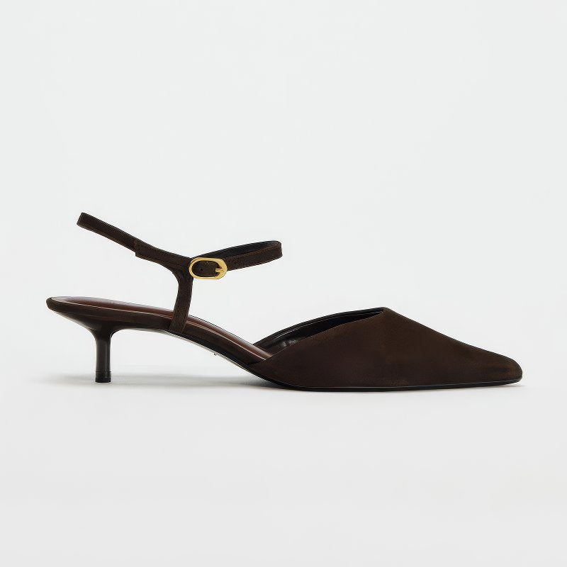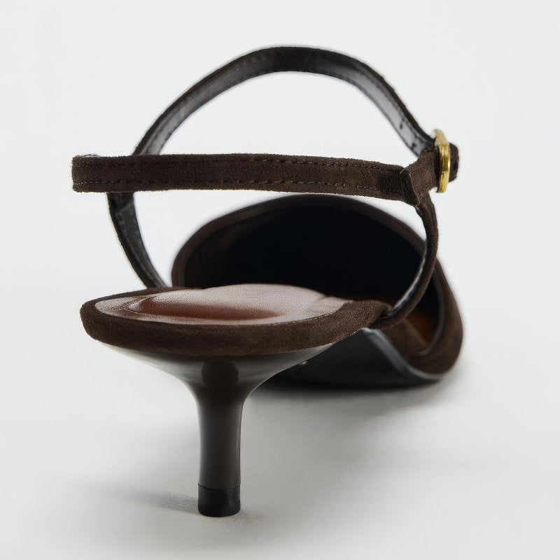 Suede Pointed Toe Slingback Kitten Heels