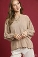 This Linen Scallop Hem Long Sleeve Blouse is crafted from lightweight linen fabric, making it perfect for warm weather. The classic crew neckline adds a timeless touch to the design. Featuring long balloon sleeves and a scalloped hem detail, this blouse offers a unique and feminine look. The relaxed, flowy silhouette ensures a comfortable fit for all-day wear. Please note that this blouse is not lined, allowing for breathability and a breezy feel.