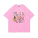 Pair it with joggers, cargo pants, or a pleated skirt — this graphic tee brings lighthearted energy wherever it goes. The pastel tones and cartoonish charm strike the perfect balance between fun and wearable street style.
