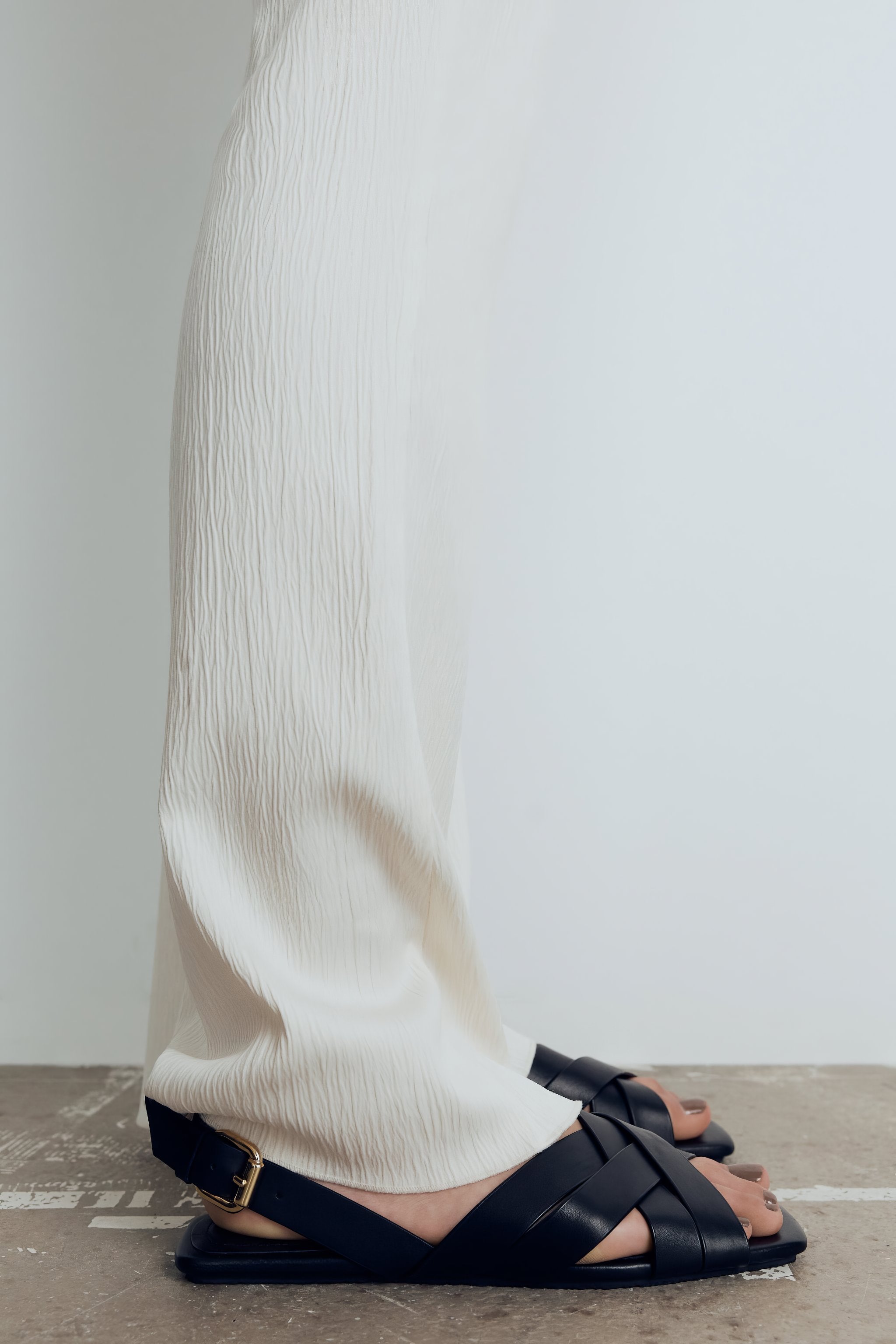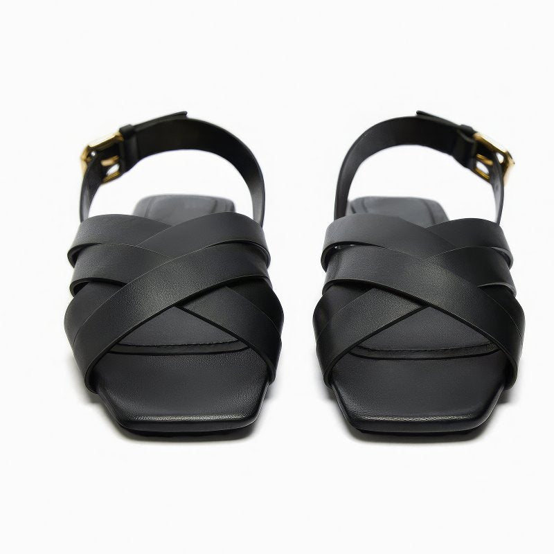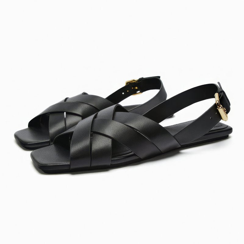 Women's Black Leather Crisscross Slingback Flat Sandals – Timeless Style with Everyday Comfort