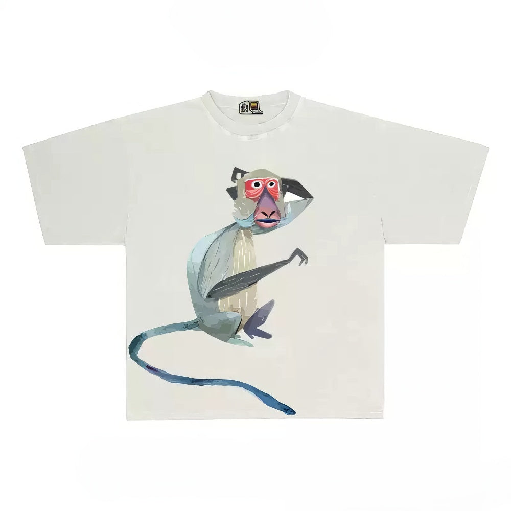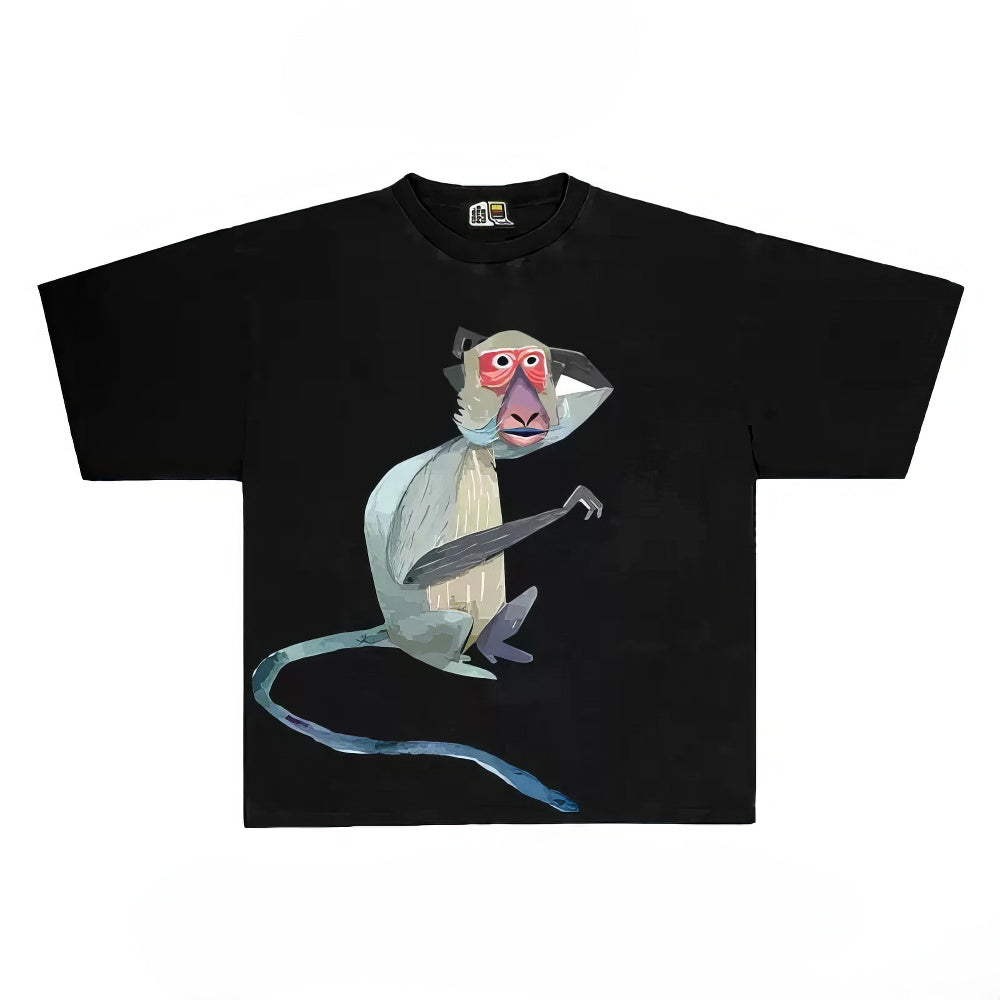 With its fusion of artistic abstraction and realistic design, the Abstract Graphic Tee with Realistic Monkey Print turns everyday casual wear into a standout, expressive fashion statement.