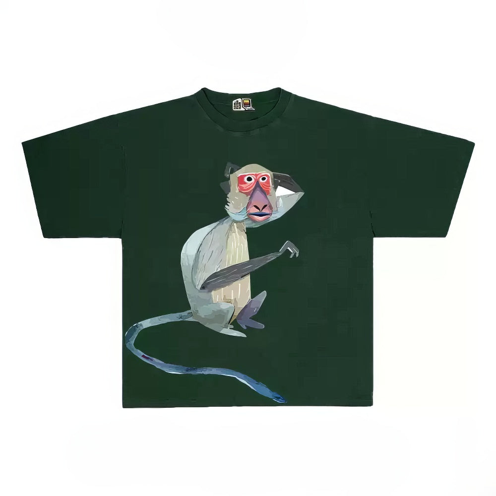 Make a bold artistic statement with the Abstract Graphic Tee with Realistic Monkey Print. Featuring a detailed, lifelike monkey illustration set against an abstract backdrop, this tee blends creativity and realism for a striking casual look.