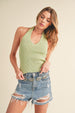 La camisola acanalada con cuello halter es una prenda esencial, moderna y chic. Su textura acanalada añade un toque sofisticado a cualquier look. El diseño del cuello halter realza los hombros y el escote con elegancia. Con su estilo versátil, esta camisola combina fácilmente con looks de día y de noche.