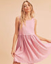 El minivestido de tirantes con cuello redondo es una prenda versátil e imprescindible en cualquier armario. Este vestido presenta un escote redondo clásico y un largo mini, ofreciendo una silueta sencilla y atemporal. Su estilo de tirantes proporciona comodidad y libertad de movimiento, lo que lo convierte en una opción ideal para el día a día o para salidas informales. Combínalo con zapatillas o sandalias para un look relajado y desenfadado, o con tacones y accesorios para un conjunto más sofisticado.