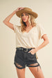 La camiseta de manga corta con cuello en V y abertura lateral presenta un moderno diseño de cuello en V con elegantes aberturas laterales y mangas enrolladas. Es perfecta para un look casual pero a la moda. Las aberturas laterales y las mangas enrolladas añaden un toque de detalle y encanto al clásico estilo de manga corta. Combínala con jeans, shorts o una falda para un look informal y chic.