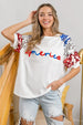 Make a patriotic statement with this eye-catching "America" letter applique spangle puff sleeves top. The bold applique adds a fun and festive touch to this stylish piece. The puff sleeves bring a touch of femininity and charm to the top. Perfect for celebrating special occasions like Independence Day or showing off your American pride year-round. Pair it with jeans or shorts for a chic and trendy look that will make you stand out.