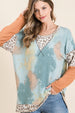 Esta camiseta de manga larga con cuello redondo y estampado de leopardo y efecto tie-dye es una prenda moderna y llamativa. La combinación de tie-dye y estampado de leopardo le da un toque moderno y vanguardista a tu look. Hecha de suave tejido de rizo, garantiza comodidad y estilo. Perfecta para añadir un toque divertido a tu armario casual.