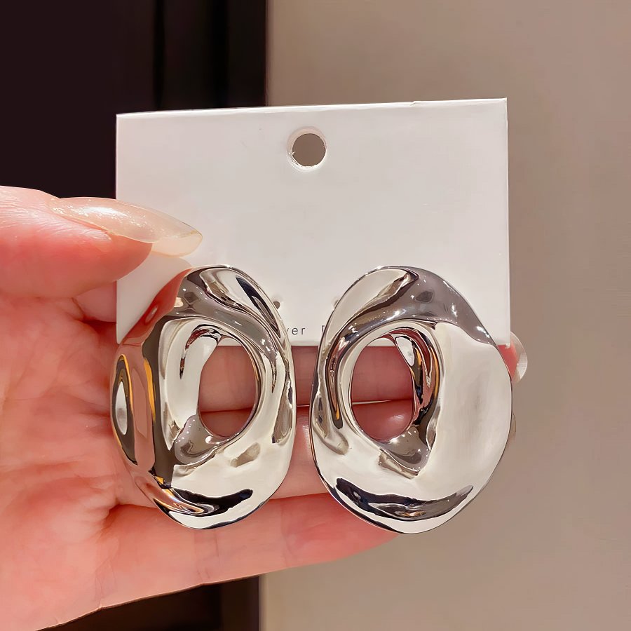 The Bold Polished Abstract Oval Drop Dangle Earrings offer a sculptural twist on classic elegance. Featuring fluid, asymmetrical oval shapes with a high-shine polished finish, these earrings make a statement through modern artistry. Their abstract silhouette adds a sense of movement and individuality, making them the perfect accessory for those who favor bold, contemporary design.