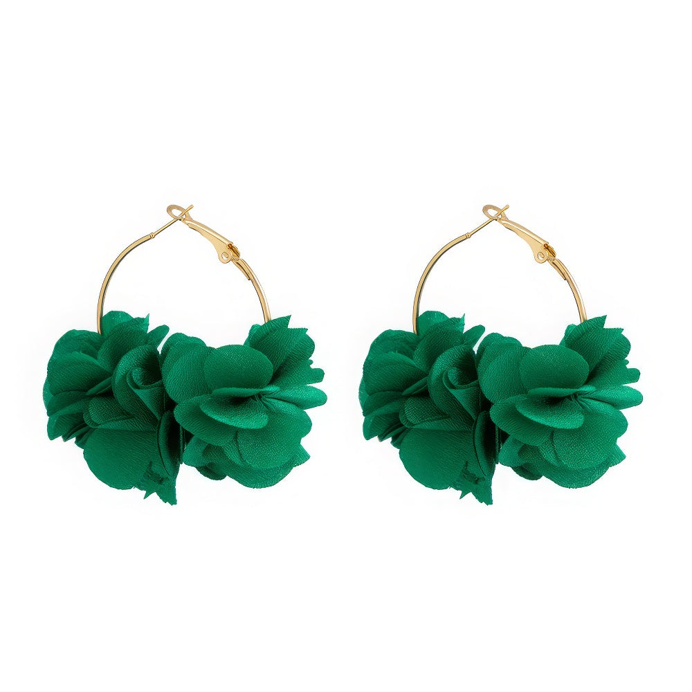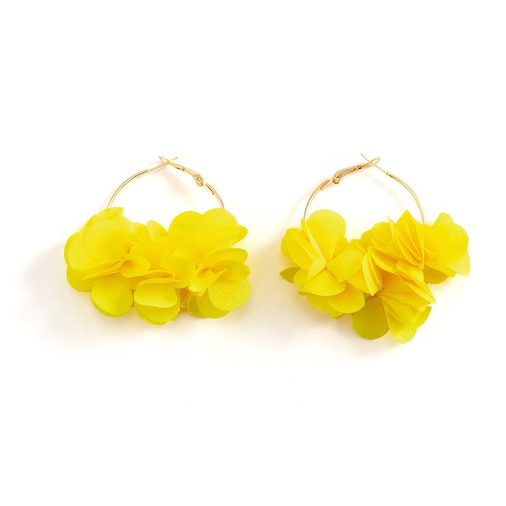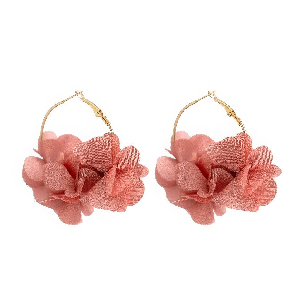 Romantic, airy, and beautifully detailed—the Chiffon Flower Cluster Hoop Earrings are a statement in refined femininity and timeless charm.