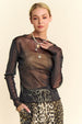 Una blusa de manga larga con dobladillo ondulado de malla brillante es una prenda de moda que combina una tela de malla brillante y reluciente con un dobladillo ondulado. La malla brillante le da un toque de glamour y brillo, convirtiéndola en una opción ideal para ocasiones especiales o salidas nocturnas. El dobladillo ondulado, con su borde ligeramente fruncido, le da un toque divertido y femenino al diseño general de la blusa.