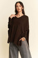 Un top con mangas murciélago y aberturas laterales es elegante y moderno, con un dobladillo trasero más largo, aberturas laterales y mangas murciélago. El diseño del dobladillo crea una silueta favorecedora, mientras que las aberturas laterales aportan movimiento y un toque de estilo. Las mangas murciélago son holgadas y elegantes, dándole un aspecto relajado y moderno. Este top es versátil y se puede usar tanto formal como informal, convirtiéndolo en una prenda versátil y moderna para tu armario.