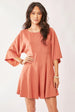This versatile romper features a flattering swing silhouette crafted from soft, stretchy fabric that ensures all-day comfort. The design showcases elegant bell sleeves and a feminine flared cut that creates graceful movement. The coral pink shade adds a fresh, contemporary touch while the chest pocket adds practical detail. Perfect for both casual outings and dressy occasions, this romper combines style with comfort. The lightweight material and relaxed fit make it ideal for warm weather wear.