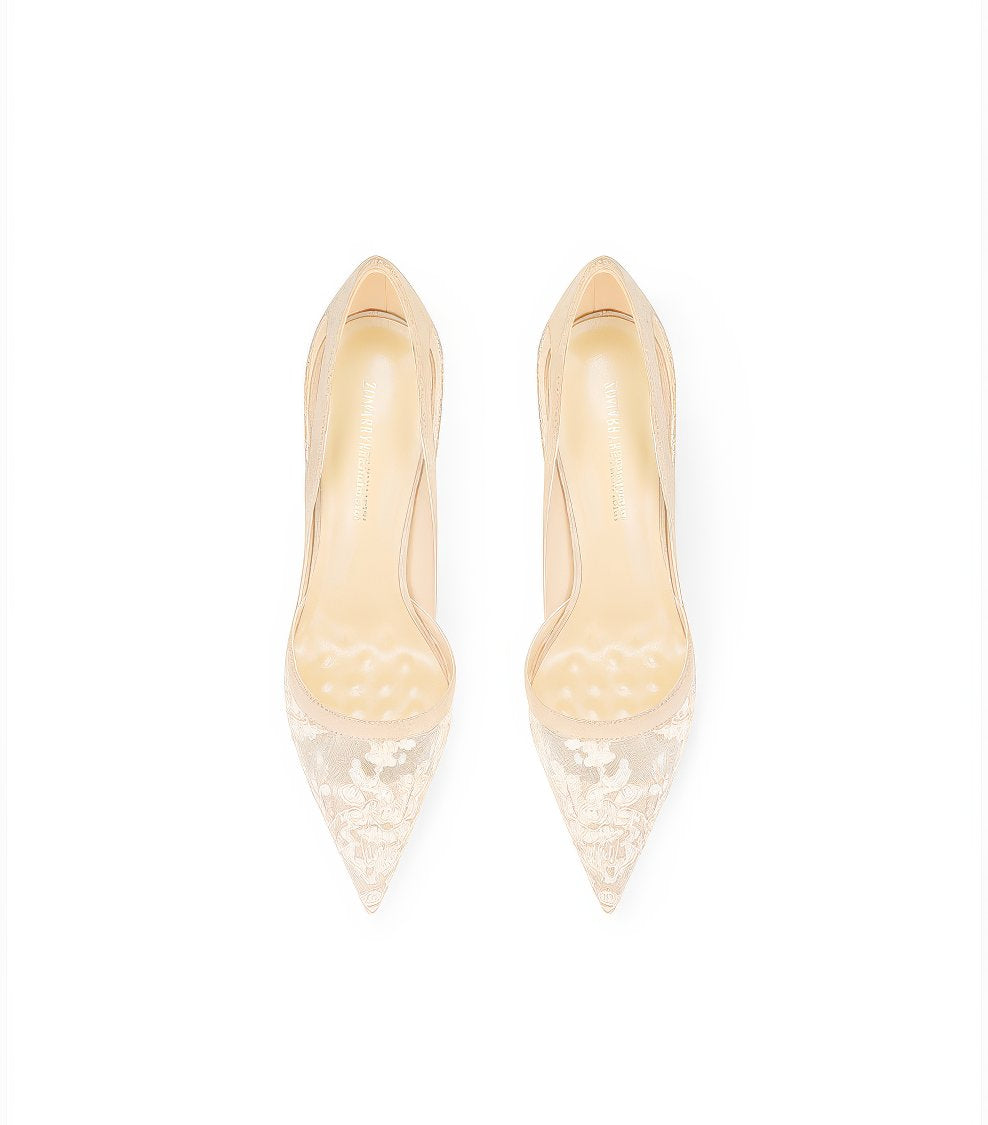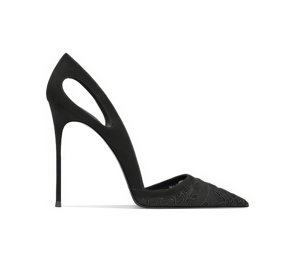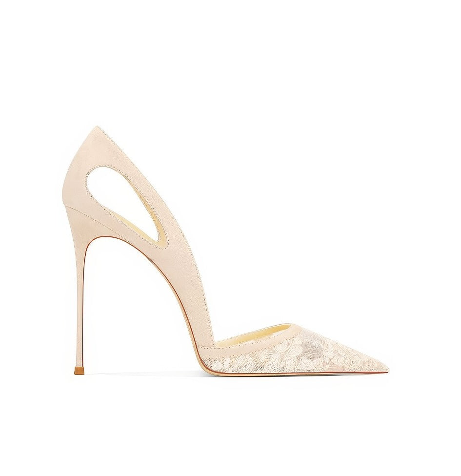 El delicado bordado aporta un toque de lujo, creando un contraste visualmente impactante con el moderno diseño recortado. Estos tacones son perfectos para realzar cualquier atuendo, desde un look casual chic hasta uno formal.