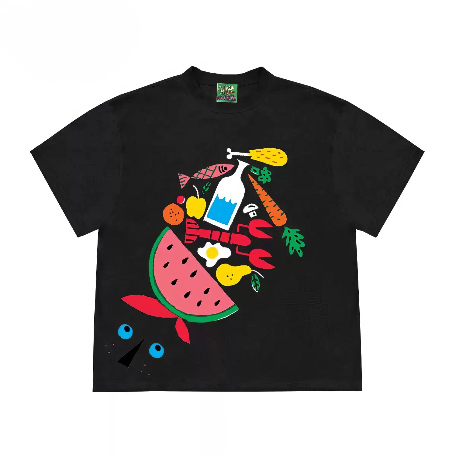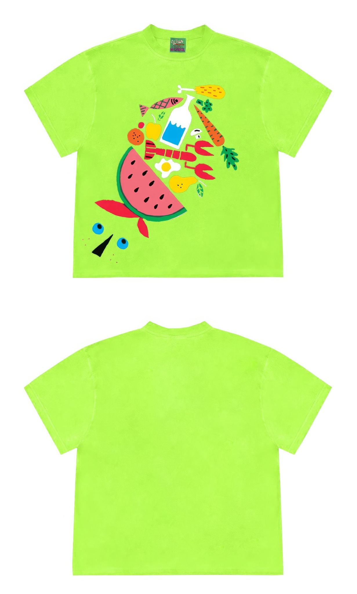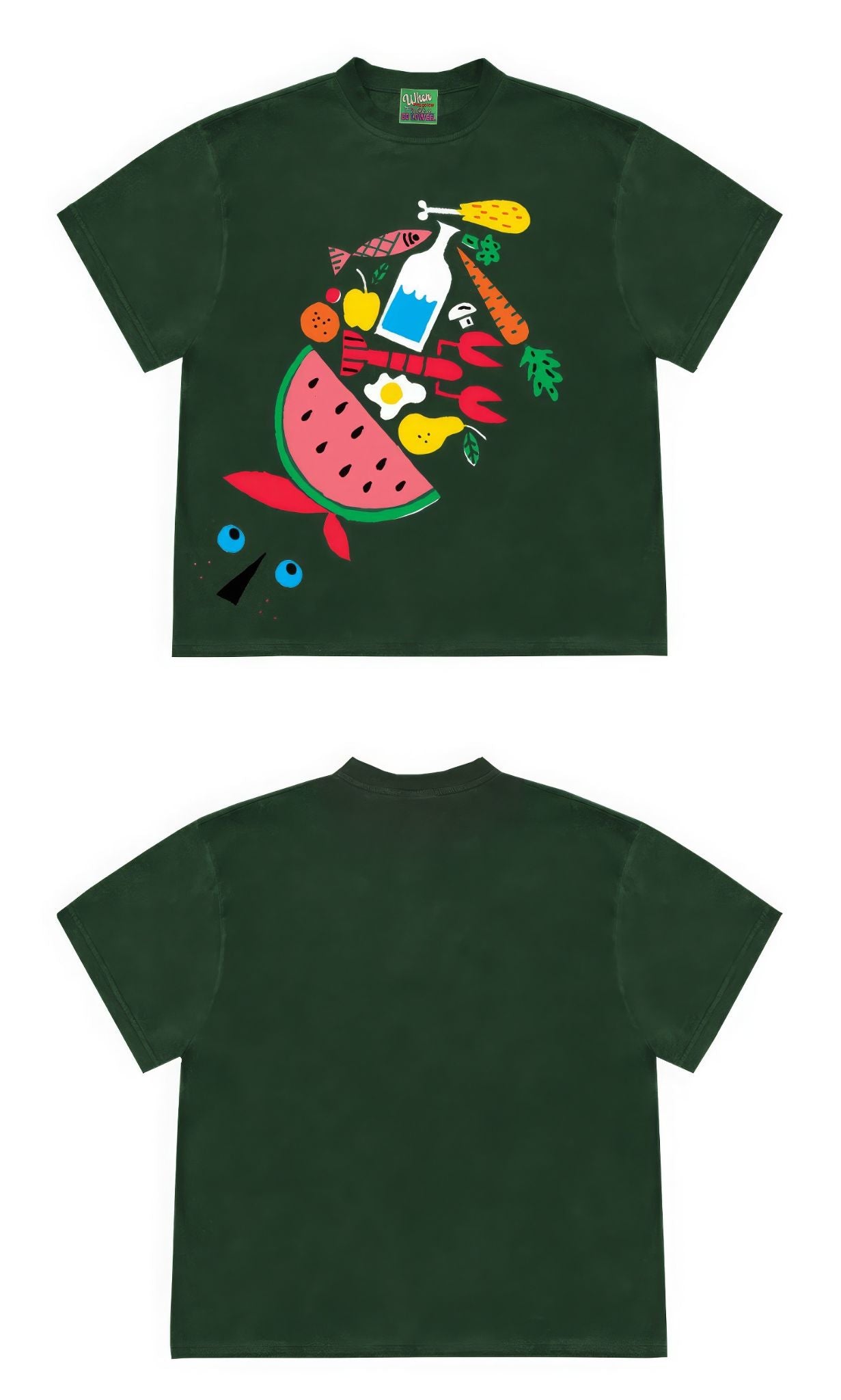 Serve up style with the Funky Food and Beverage Graphic Print T-Shirt—a playful blend of humor, color, and casual comfort made for those who love bold, quirky fashion.