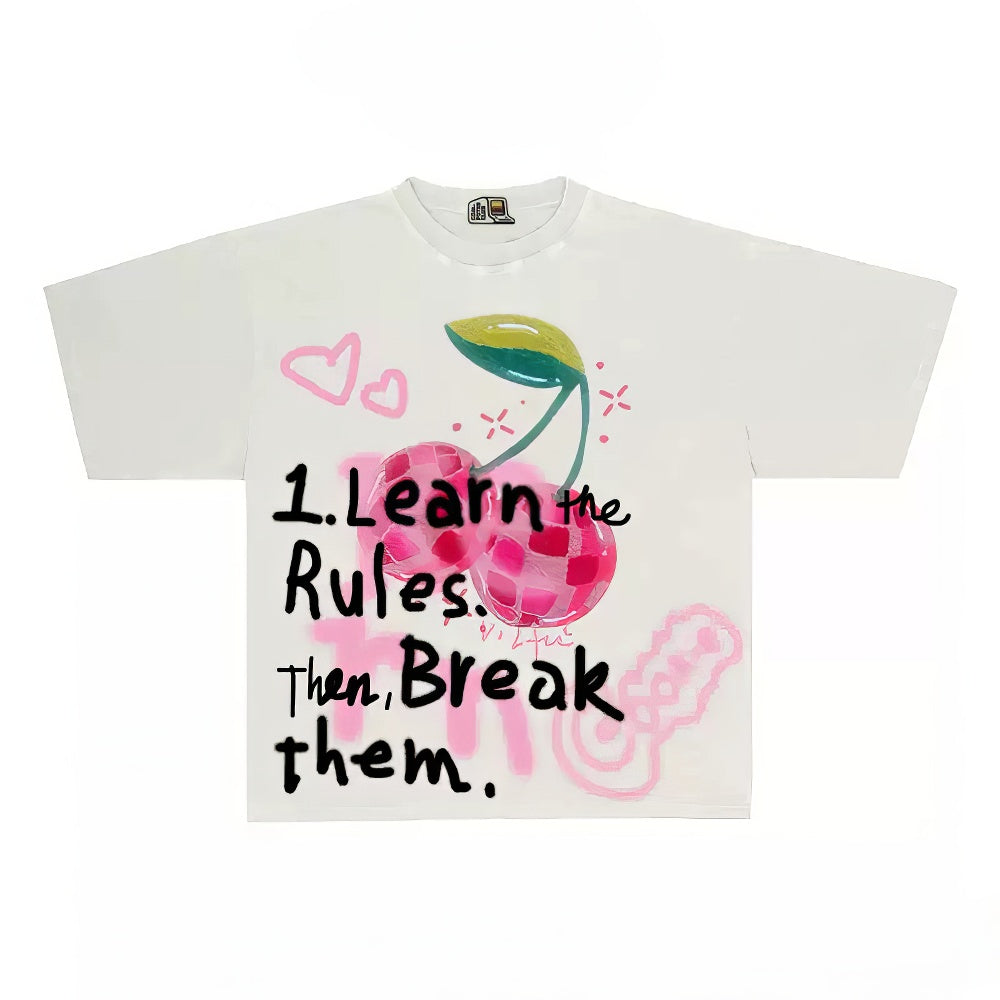 Motivational Graphic Tee with Cherry and Graffiti Print