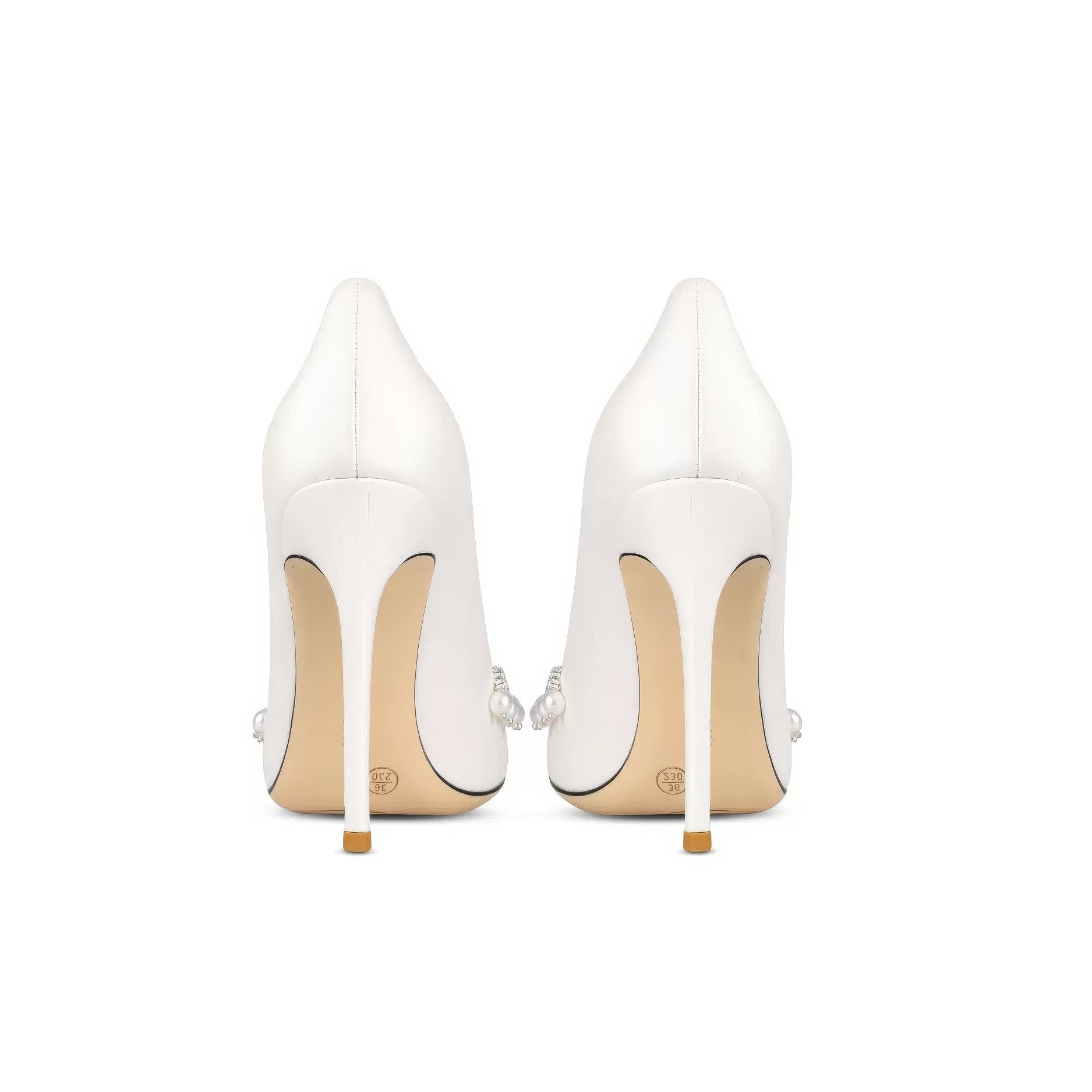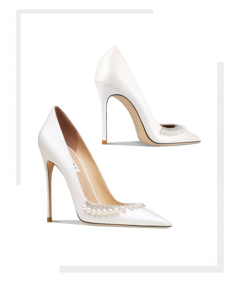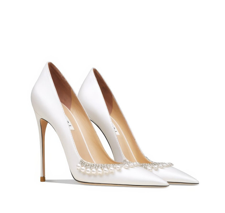 El diseño de punta alarga la pierna y añade un toque moderno a la silueta clásica, mientras que las perlas aportan un toque de glamour y refinamiento. Elaborados con atención al detalle, estos tacones ofrecen estilo y comodidad, ideales para eventos donde quieras brillar. El satén realza la sensación de lujo, y los flecos de perlas capturan la luz con belleza, aportando movimiento y elegancia a cada paso.