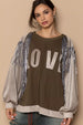 This stylish oversized sweatshirt features a premium cotton blend construction for ultimate comfort and durability. The eye-catching olive green base showcases a bold LOVE graphic print while contrasting beige balloon sleeves add visual interest. Stunning sequin fringe detailing along the sleeves creates movement and glamour, making this piece perfect for casual outings or statement streetwear looks. The relaxed oversized fit provides comfort while maintaining a fashion silhouette. Ideal for layering and perfect for those who want to make a fashion statement with comfortable everyday wear.