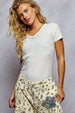 This essential ribbed V-neck T-shirt features a classic feminine silhouette crafted from premium cotton blend material. The soft ribbed texture adds visual interest while maintaining comfort for all-day wear. The flattering V-neckline and fitted cut create a polished look that transitions seamlessly from casual to dressed-up occasions. Made with breathable, easy-care fabric that retains its shape wash after wash. The neutral tone makes it a versatile wardrobe staple that pairs effortlessly with any bottom. Perfect for layering or wearing alone, this T-shirt combines timeless style with modern comfort.