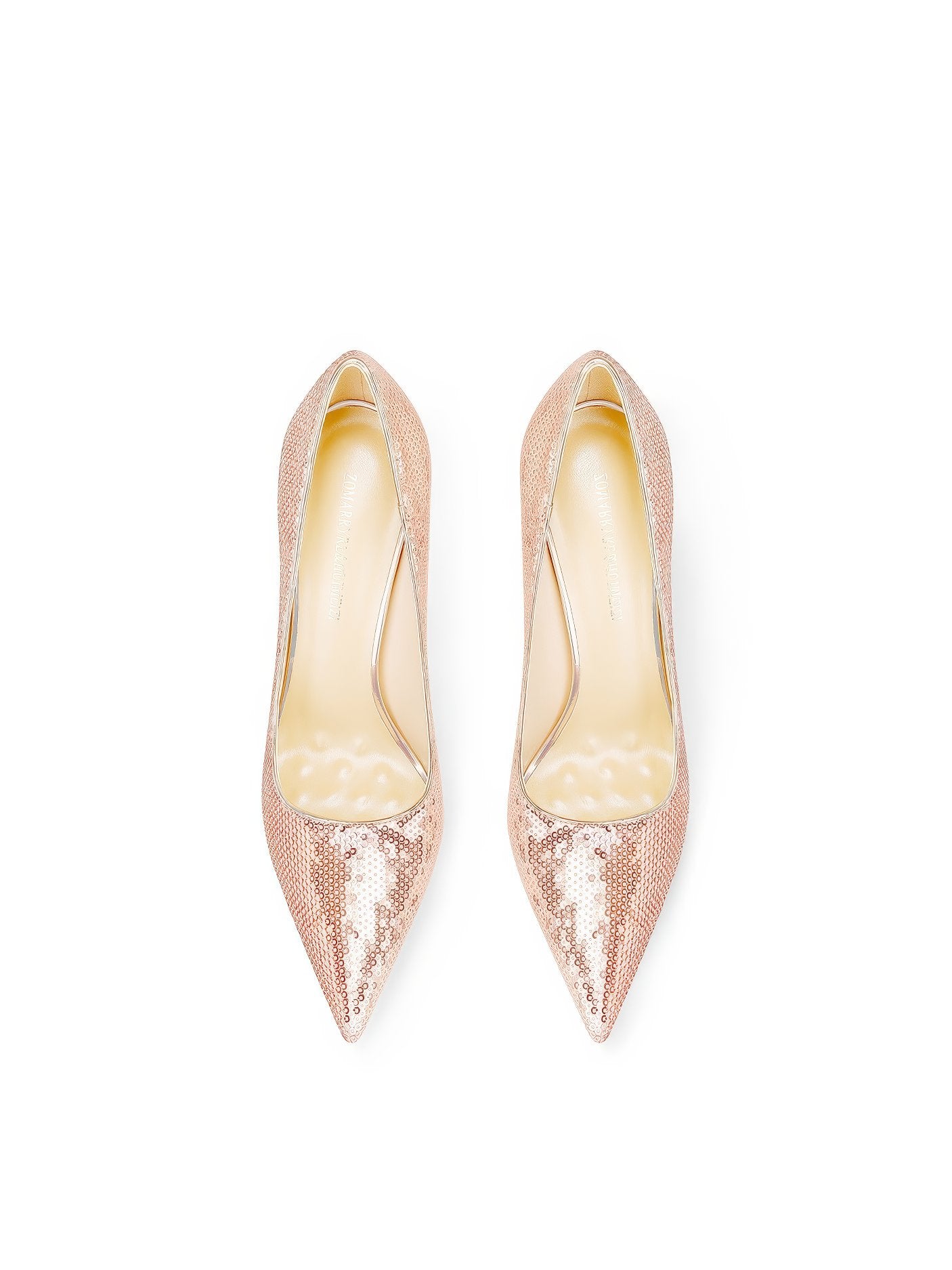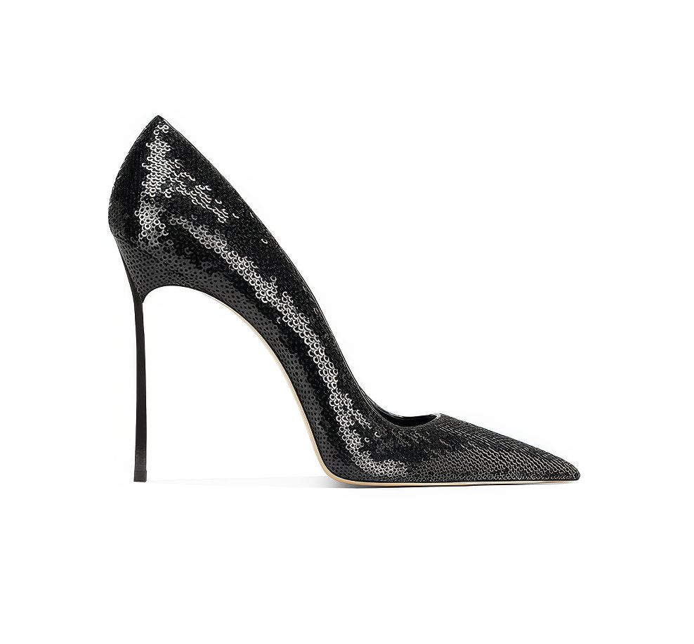 Tacones de aguja con punta puntiaguda y decoración de lentejuelas
