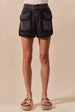 These stylish high-waisted cargo shorts feature distinctive contrast mesh panel pockets that add both functionality and visual interest. Crafted from durable cotton blend fabric with comfortable stretch, they offer a relaxed fit perfect for casual wear. The adjustable drawstring waistband ensures a customizable fit while the multiple pockets provide practical storage. The modern design combines utilitarian cargo styling with contemporary fashion elements, making them ideal for summer activities, casual outings, or streetwear looks. The versatile design pairs well with various tops and footwear for effortless everyday styling.