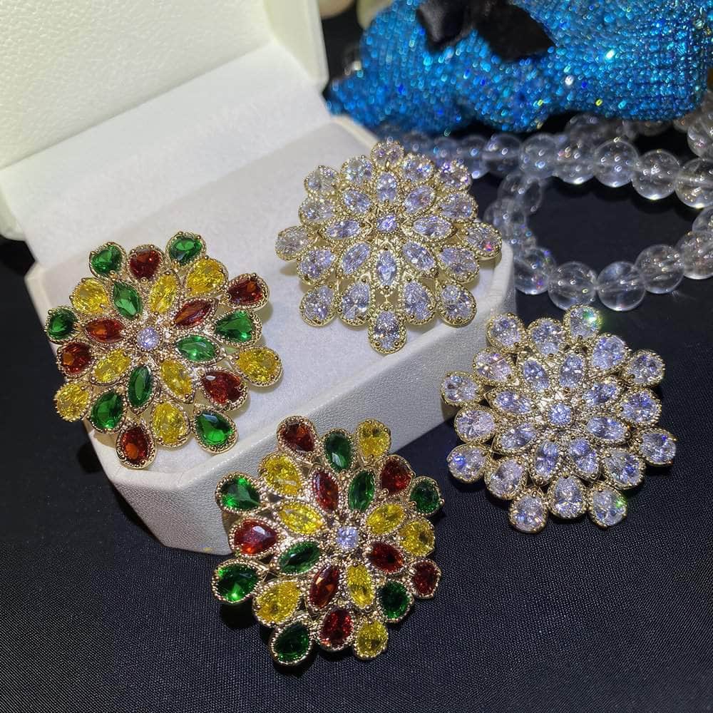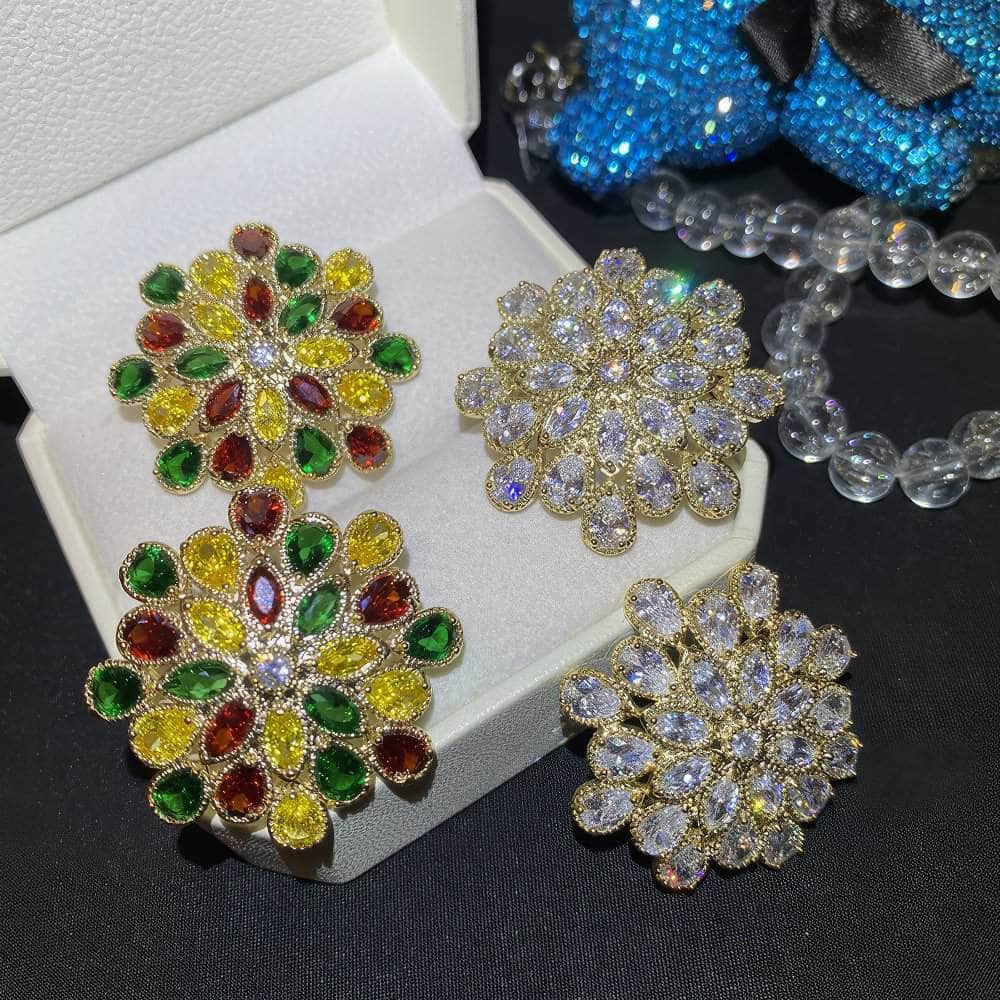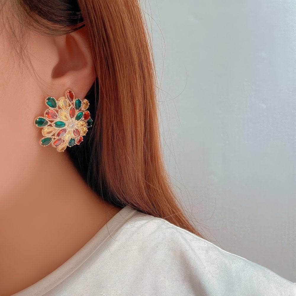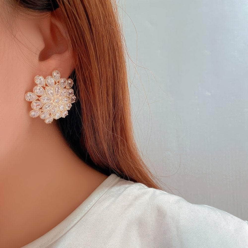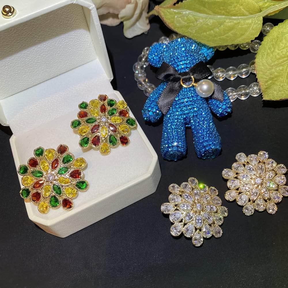 Los pendientes florales con cristales pavimentados brillantes son un accesorio deslumbrante y llamativo que irradia elegancia y sofisticación. Aquí tienes un resumen de sus características y sugerencias de estilo:
