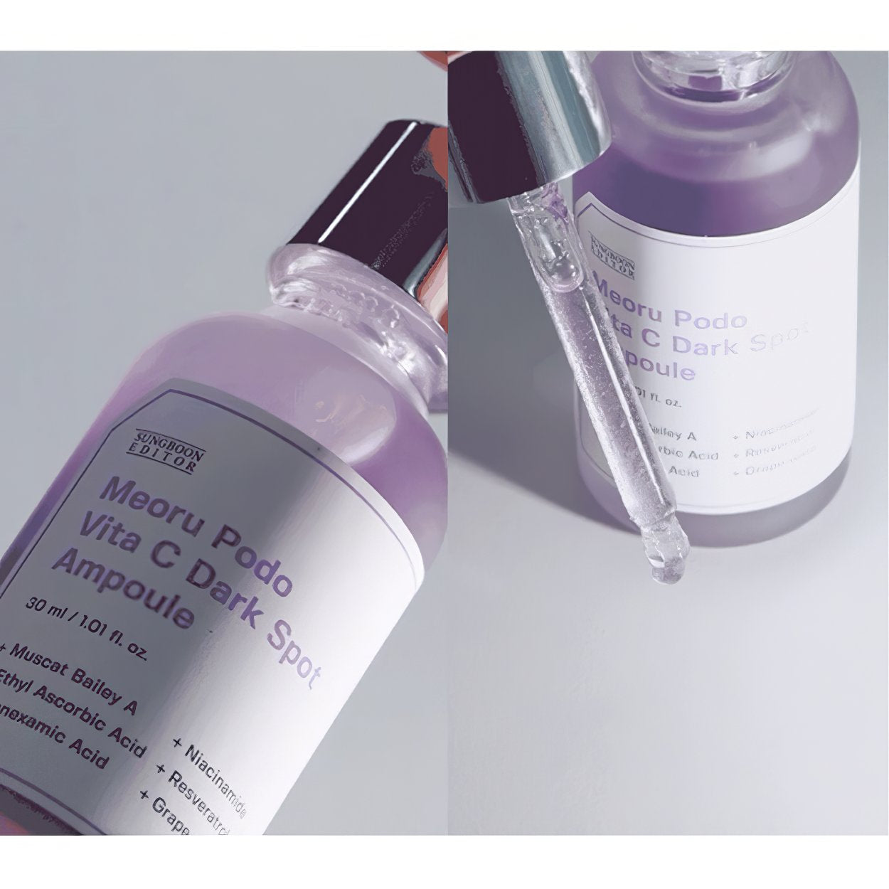 Libera la luminosidad natural de tu piel con la ampolla antimanchas Meoru Podo Vita C de SUNGBOON EDITOR. Elaborada con potente vitamina C, esta ampolla combate las manchas oscuras y unifica el tono de la piel para una apariencia impecable y juvenil. ¡Dile adiós a la tez apagada e irregular y dale la bienvenida a una piel radiante y vibrante!