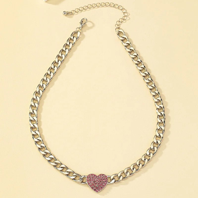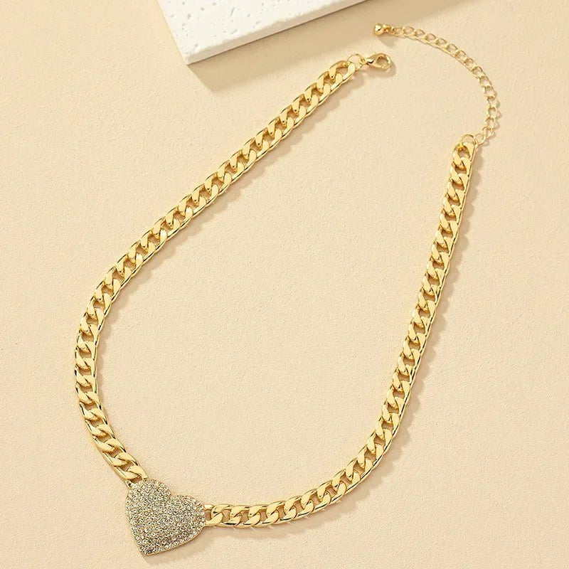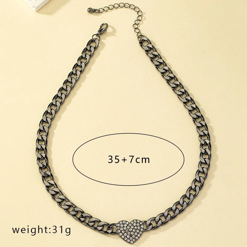¡Prepárate para marcar tendencia con este divertido conjunto de collar y pulsera de metal con colgante en forma de corazón y piedras de cristal! Esta moderna cadena para clavícula para mujer cuenta con un colgante en forma de corazón y piedras de cristal para un toque único. ¡Acapararás todas las miradas con tu estilo único!