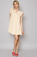 This charming mini dress features a delicate floral print on a soft cream base, crafted from lightweight cotton blend fabric for ultimate comfort. The dress showcases feminine ruffle cap sleeves and a classic collar detail that adds sophistication to the casual design. With its relaxed fit silhouette and mini length, this versatile piece is perfect for spring and summer occasions. Made from breathable materials that are easy to care for, this dress combines style with practicality for the modern woman.