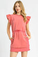This charming coral pink dress features elegant flutter sleeves and a comfortable relaxed fit perfect for casual occasions. Made from soft, breathable fabric, it includes a drawstring waist for a customizable silhouette and practical front pockets. The round neckline and above-knee length create a flattering, feminine look. The coral color adds a fresh, vibrant touch to your wardrobe, making it ideal for spring and summer wear. Easy to style and comfortable for all-day wear, this dress combines casual comfort with subtle feminine details.