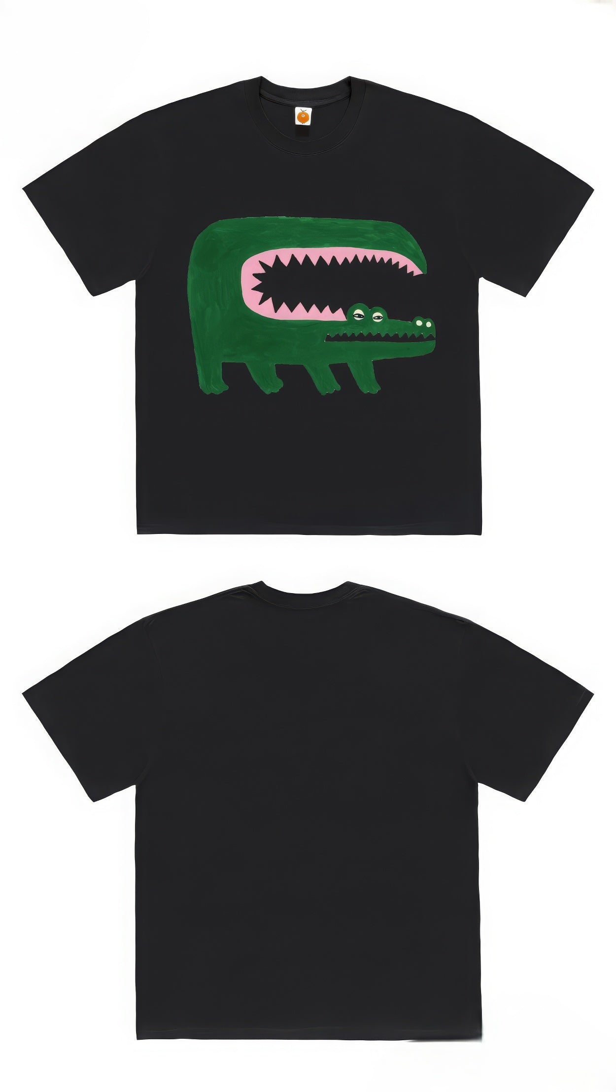 Make a bold statement with the Wide-Mouth Crocodile Graphic T-Shirt. Featuring a striking crocodile design, this shirt combines comfort with eye-catching style. Its breathable fabric keeps you cool all day, while the unique graphic adds a fierce edge to any casual outfit. Perfect for those who want to stand out effortlessly.