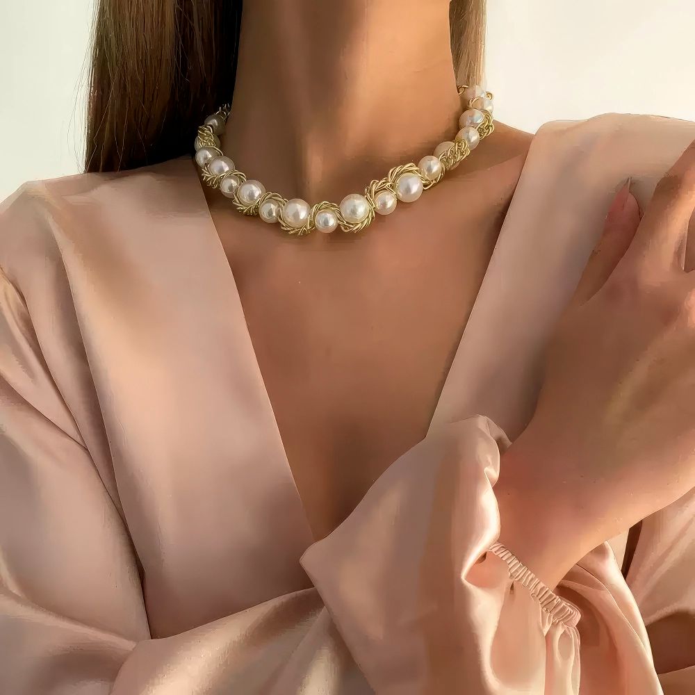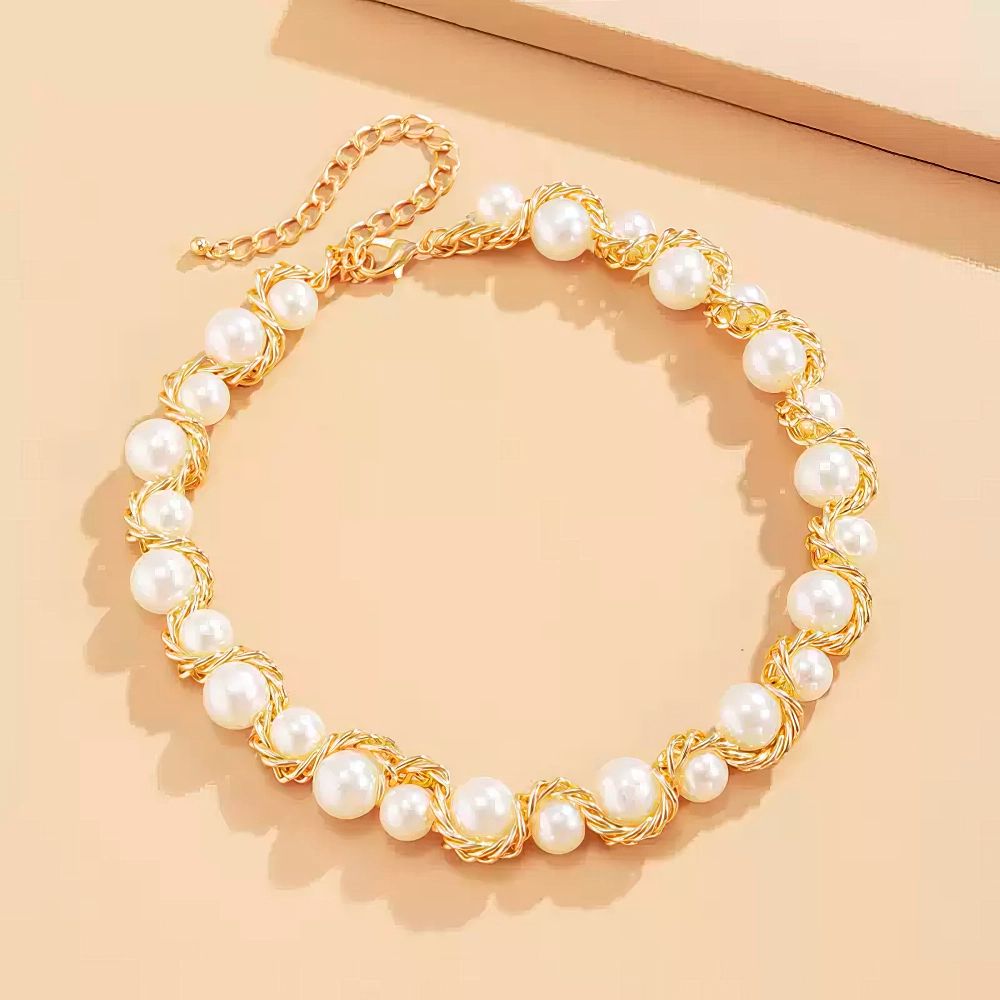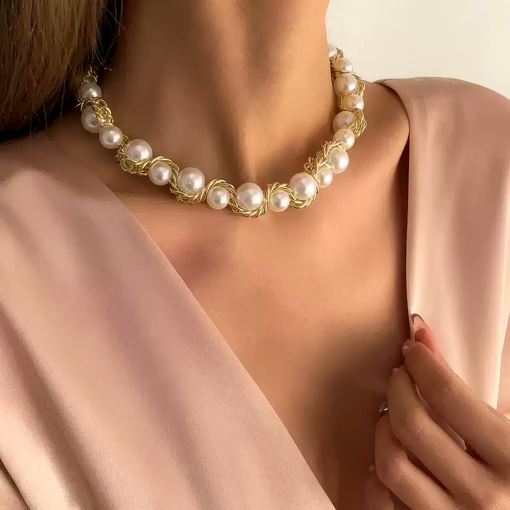 Discover timeless sophistication with this Wire-Wrapped Faux Pearl Chain Necklace, where artisanal craftsmanship meets modern elegance. Each pearl is individually secured with intricate wire wrapping, creating a distinctive texture that draws admiration. The lightweight design makes it comfortable for all-day wear, while the classic pearl aesthetic adds instant refinement to any outfit. Layer it with other pieces for a curated look or let it shine as your statement accessory. Invest in a necklace that bridges the gap between luxury and accessibility—a piece you'll reach for again and again.