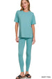 This Zenana Brushed Dty Microfiber Short Sleeve Top and Pants Loungewear Set is perfect for lounging in style and comfort. Made from soft and cozy microfiber material, it's ideal for relaxing at home or running errands. The short sleeves and cropped pants provide a breezy and effortless look. With a matching set, you can easily put together a coordinated outfit without the hassle. Upgrade your loungewear collection with this chic and versatile set today!