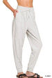 These comfortable casual jogger pants feature a relaxed fit design perfect for lounging or everyday wear. Made from soft cotton blend fabric in a classic heather grey color, they offer superior comfort and breathability. The elastic waistband with adjustable drawstring provides a customizable fit, while convenient side pockets add functionality. The modern tapered leg design creates a flattering silhouette that works well for both indoor relaxation and casual outings. These versatile pants combine comfort with style, making them an essential addition to any casual wardrobe.