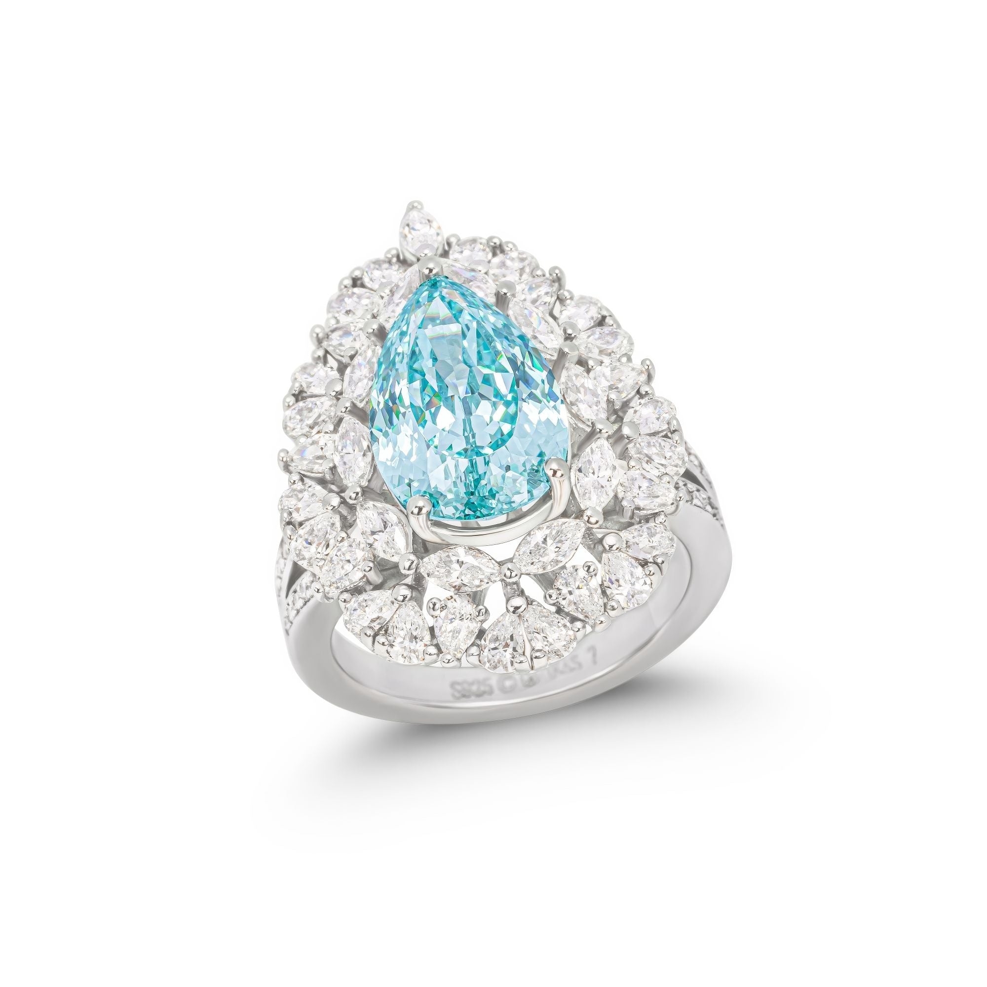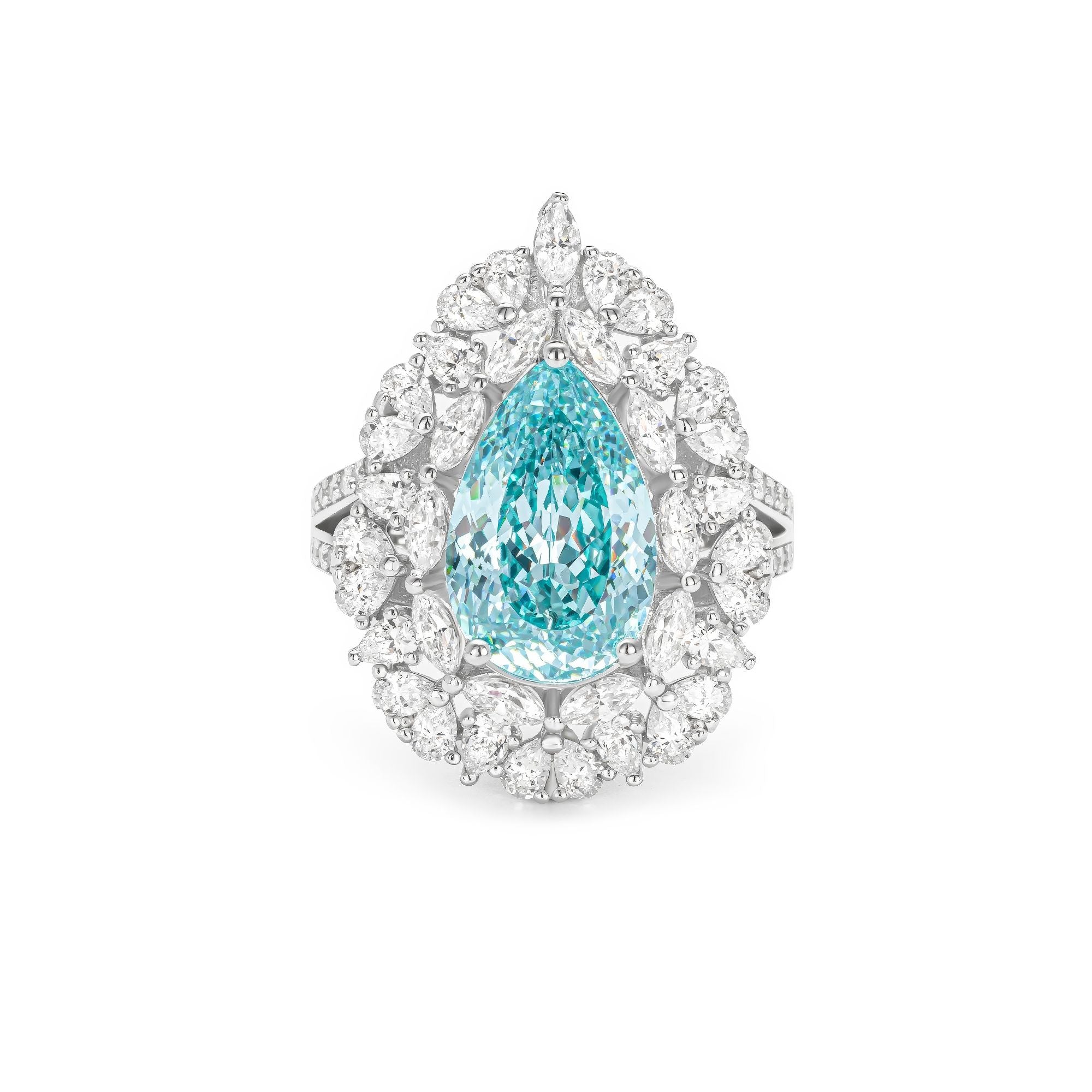 Dive into elegance with our 3.75 Ct Aqua Halo Lab Diamond Ring. Featuring a stunning 3.75-carat aqua lab diamond, this ring is encircled by a radiant halo of shimmering diamonds that enhance its mesmerizing blue hue. The cool, oceanic tones of the aqua diamond are beautifully complemented by the brilliance of the surrounding diamonds, creating a piece that's both refreshing and luxurious.