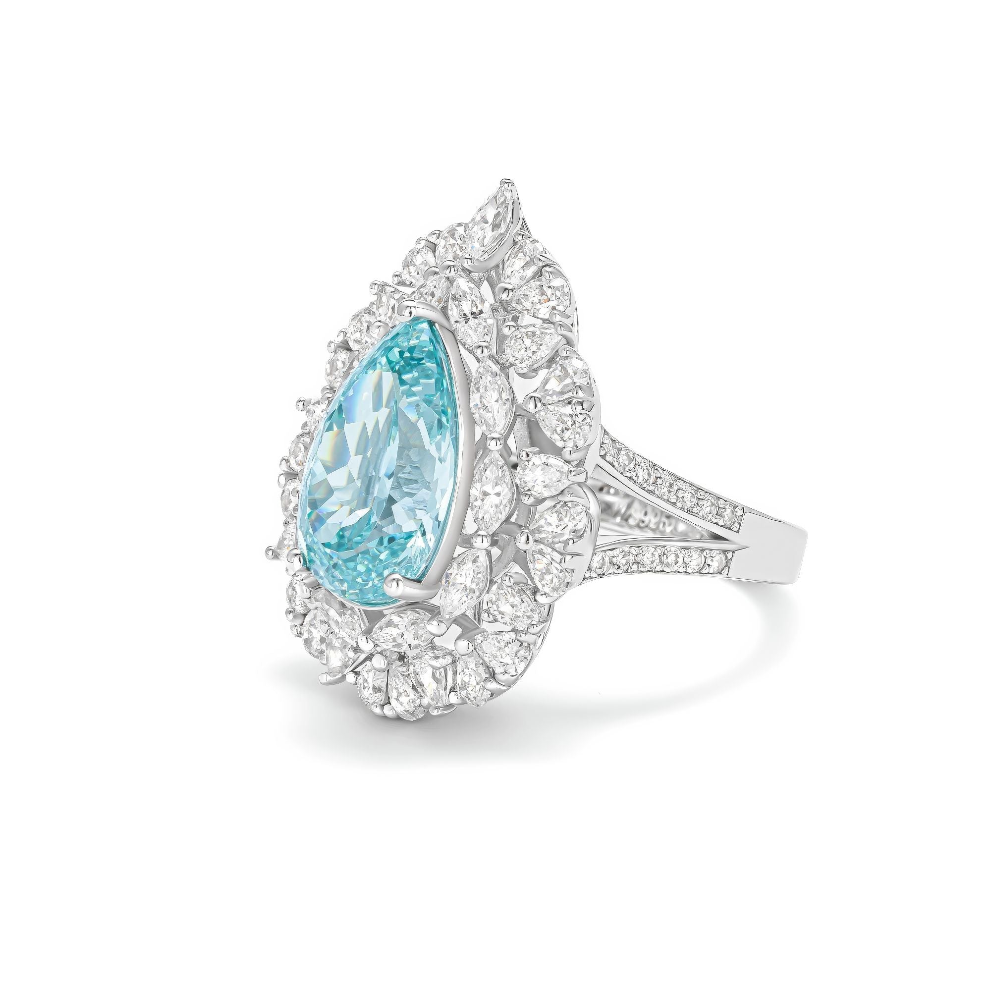 Perfect for engagements, anniversaries, or simply making a statement, the 3.75 Ct Aqua Halo Lab Diamond Ring combines ethical luxury with captivating beauty, ensuring a timeless addition to any jewelry collection.