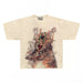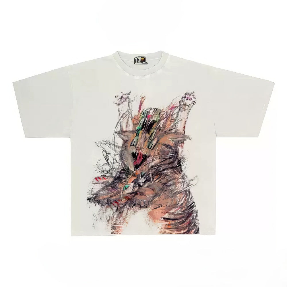 Abstract Scribble-Art Graphic Tee with Cat Print