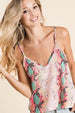 This stunning sequin cami tank features a vibrant snake print pattern with shimmering sequin embellishments that catch the light beautifully. Made with lightweight fabric and adorned with countless sequins for a luxurious feel. The adjustable spaghetti straps ensure a perfect fit while the relaxed silhouette offers comfort and style. The V-neckline adds feminine appeal, making it perfect for parties, nights out, or layering. The eye-catching combination of pink, green, and metallic tones creates a bold fashion statement that transitions effortlessly from casual to dressy occasions.