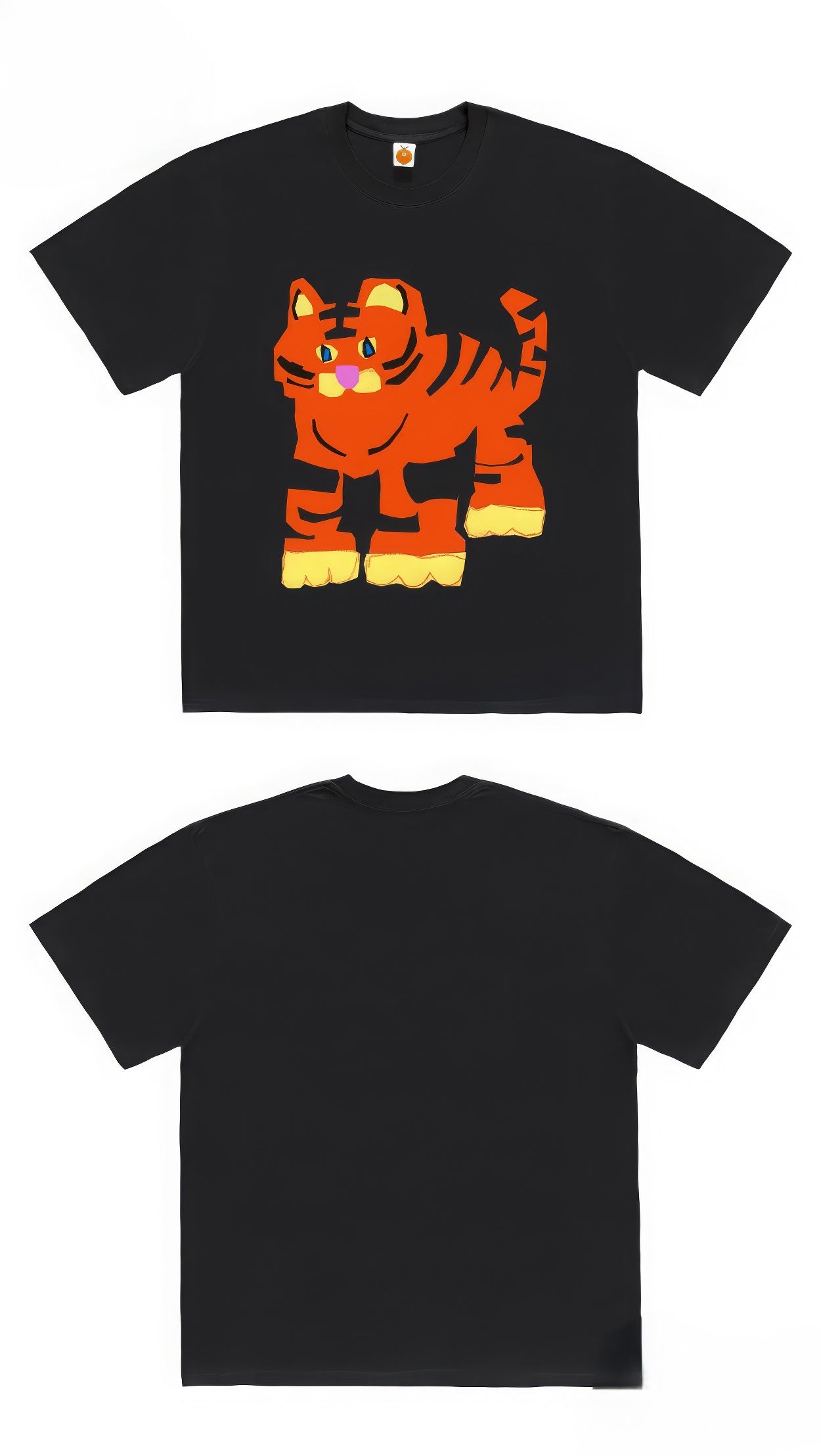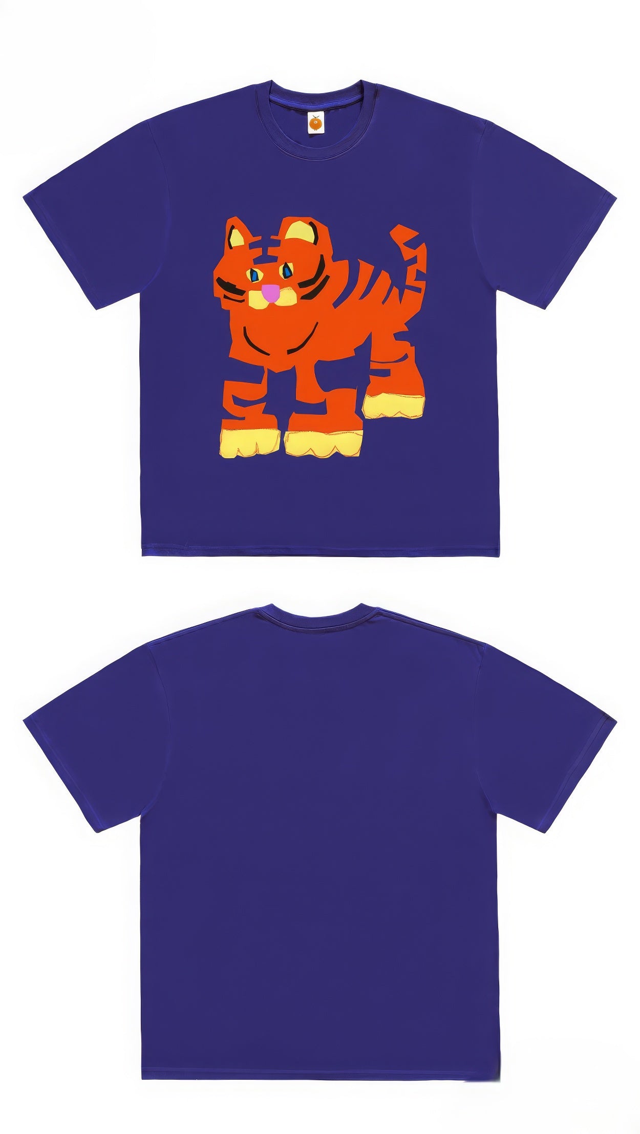 Bold Abstract Tiger Graphic Tee with Cartoon Print