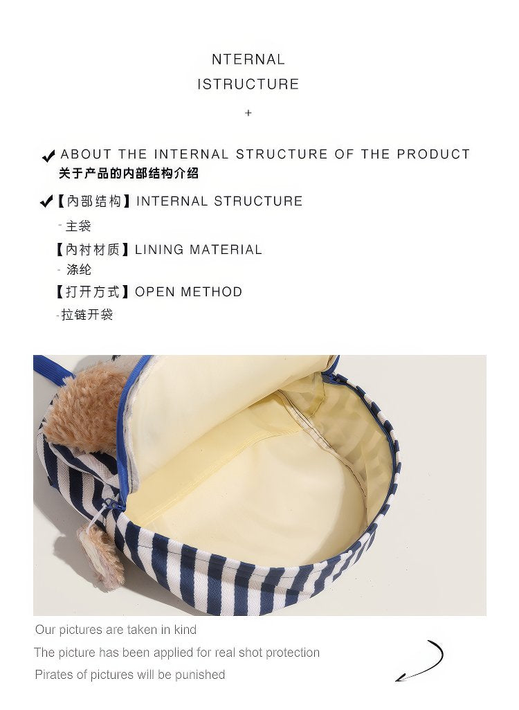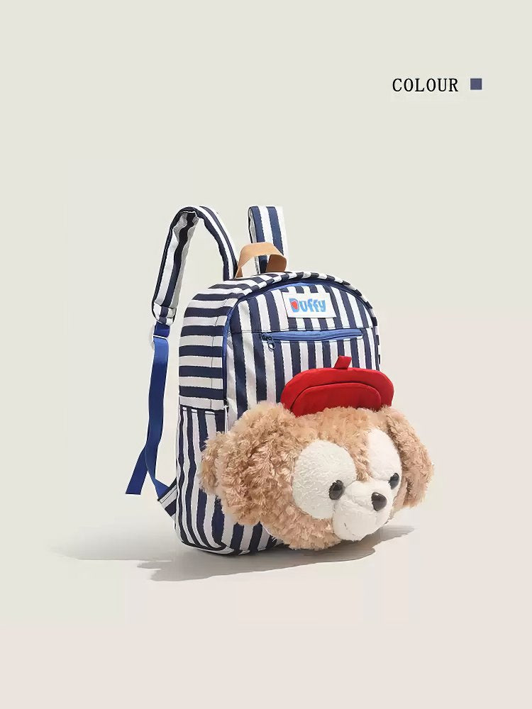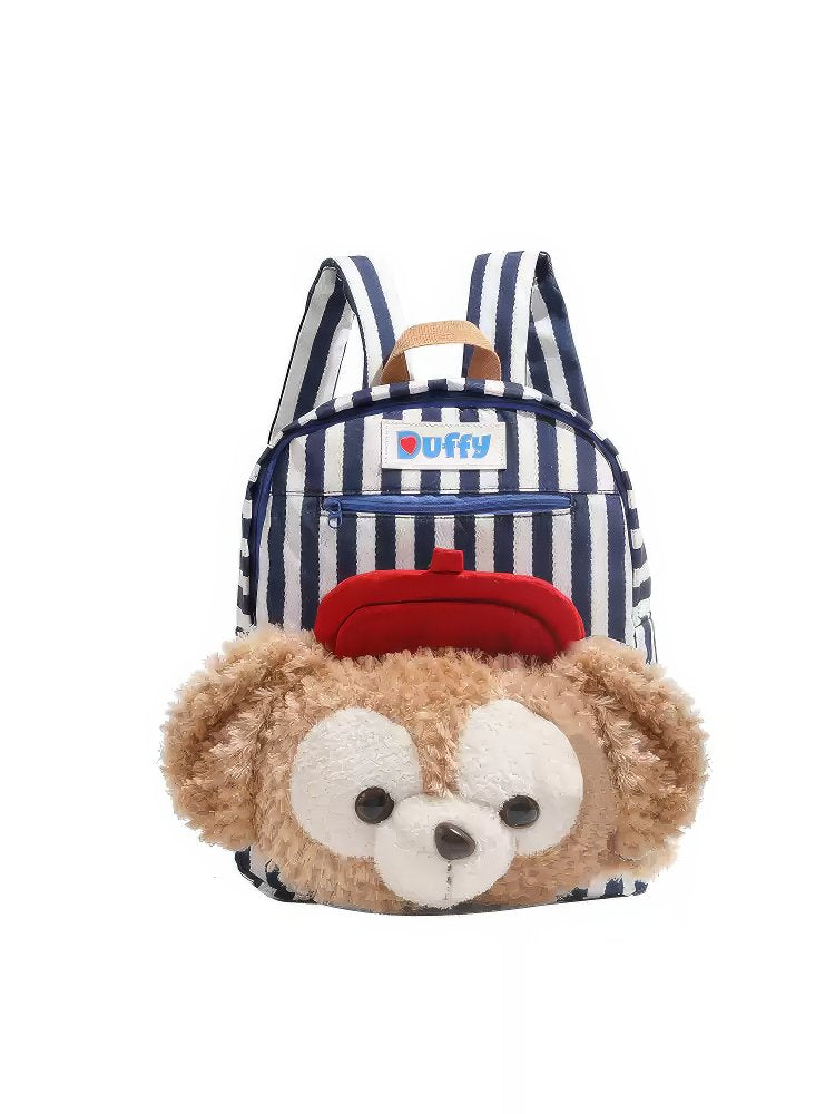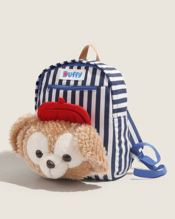 Meet your new favorite schoolbag! This Cute Striped Duffy Plush Face Pocket Schoolbag not only looks adorable with its red beret, but it also has a convenient front pocket for easy access to your essentials. Carry your belongings in style with this unique and playful bag.