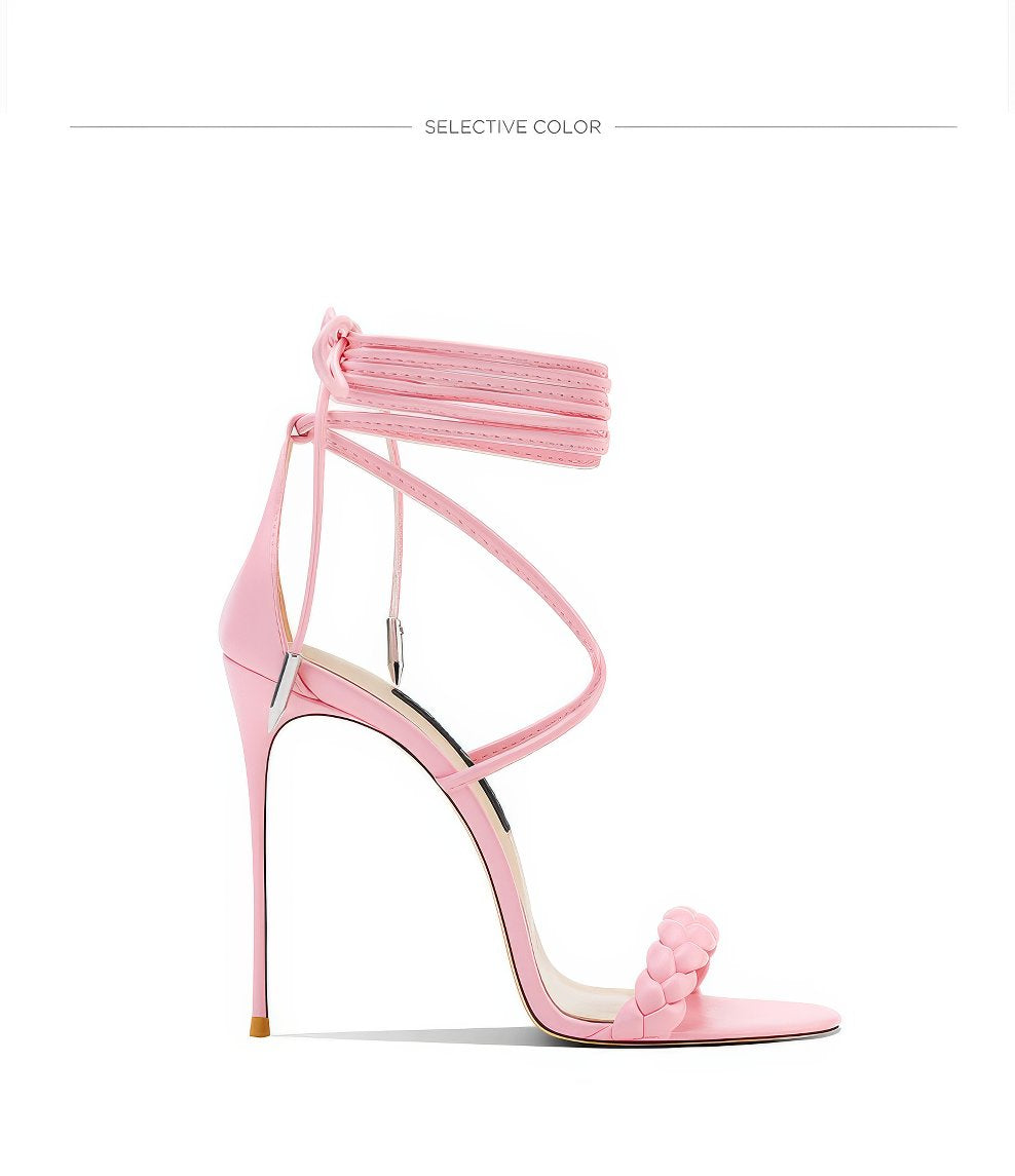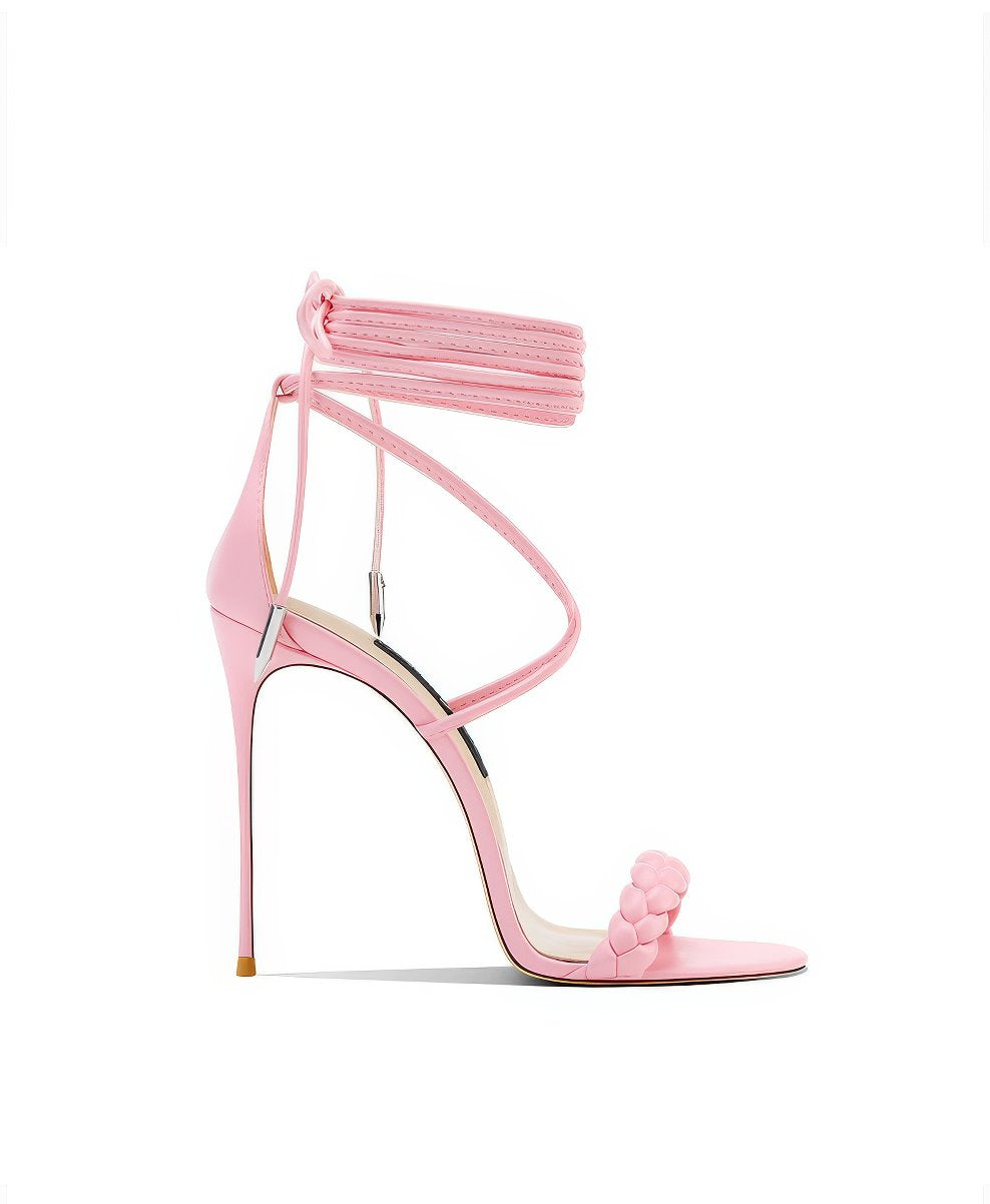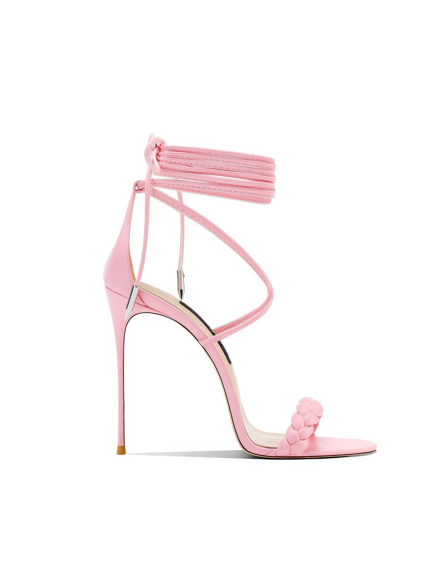 Elevate your fashion game with our Lace-Up Ankle Strap Braided Open Toe Heels, where elegance meets contemporary design.