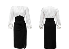Don't settle for one color when you can have two--this Long Sleeve V-Neck Two-Toned Pleated Dress gives you the best of both worlds! From business meetings to weekend brunch, this stylish dress is sure to turn heads and have you feeling your flyest. What are you waiting for? Time to get twice as nice!