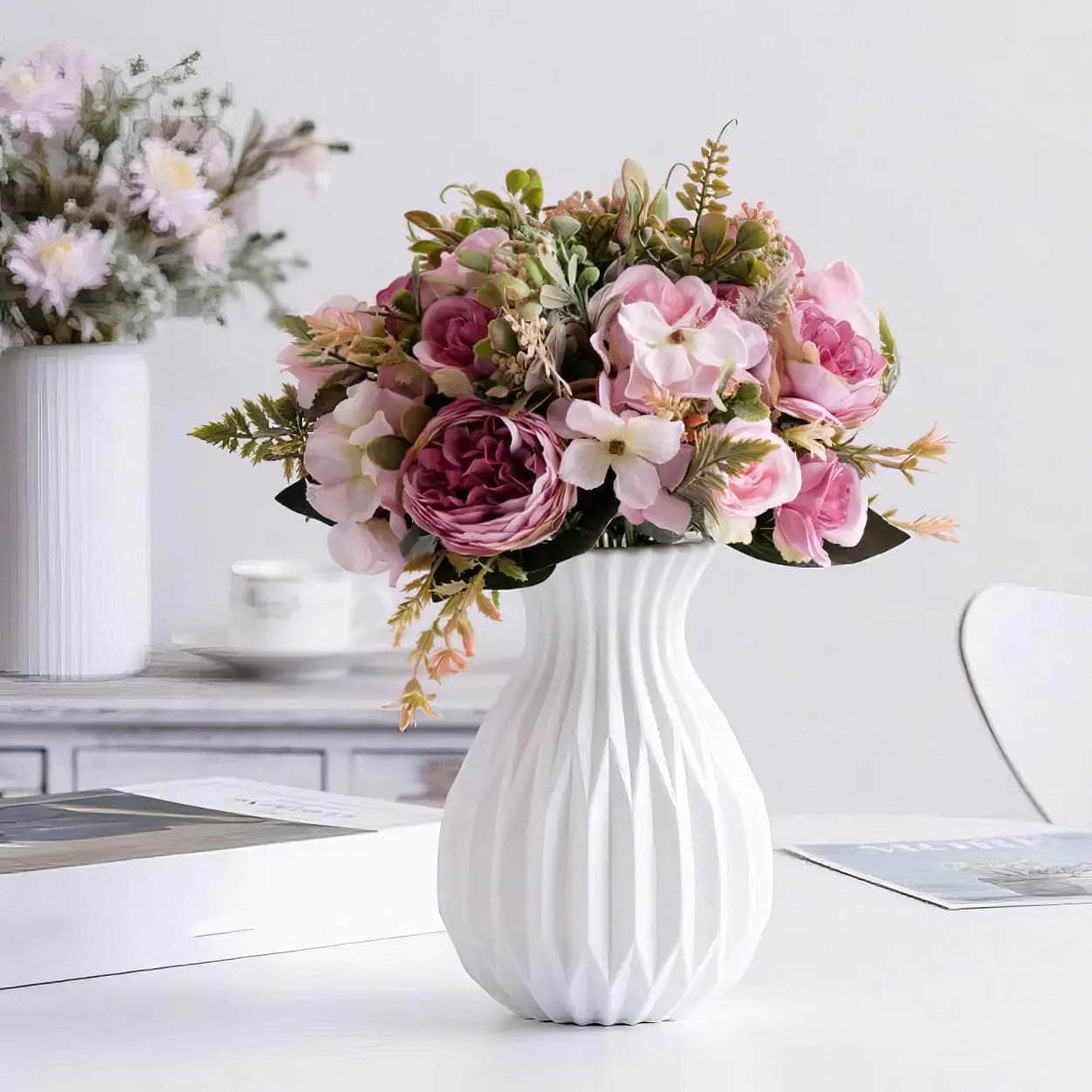 This Nordic White Plastic Flower Vase is a perfect addition to any home decor. Made with durable plastic, it is lightweight and easy to transport. The clean and simple design adds a touch of elegance to any room, while the white color complements any flower arrangement.