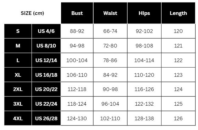 Hips: Measure around the widest point of the hips/buttocks with feet together.