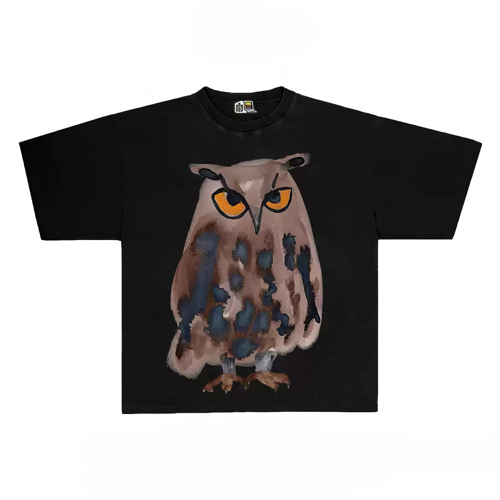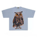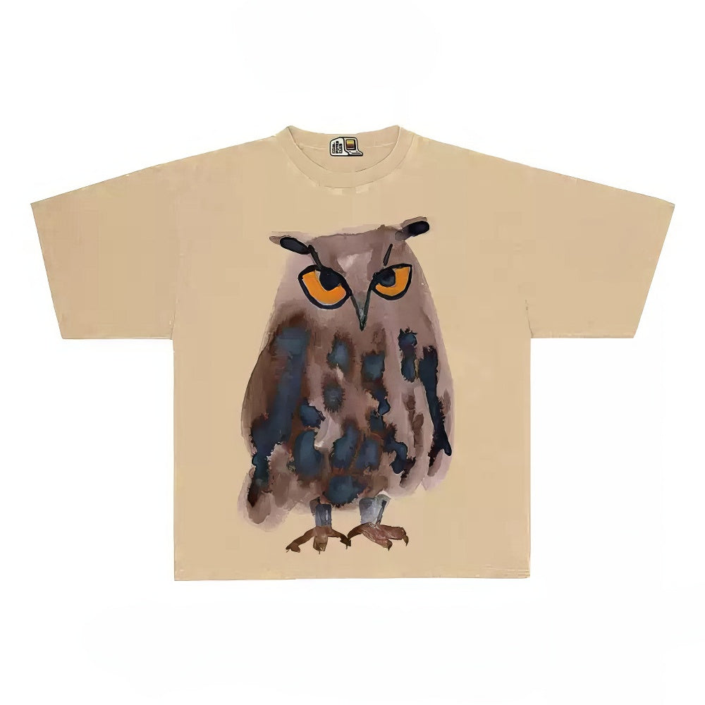 Oversized Owl Graphic Tee with Watercolor Style Print